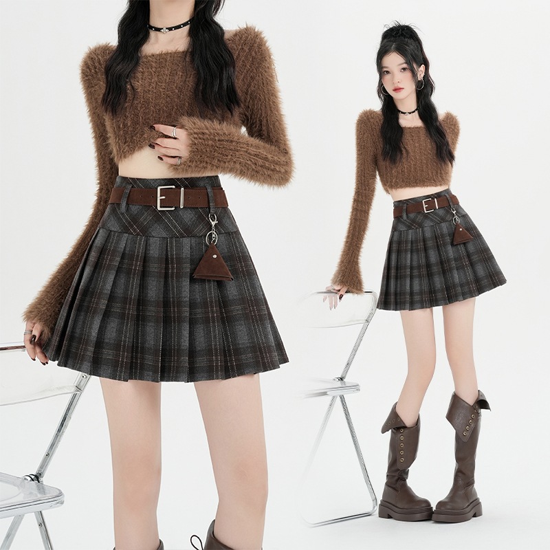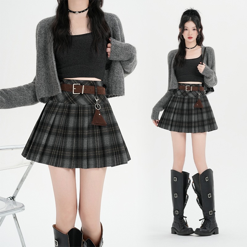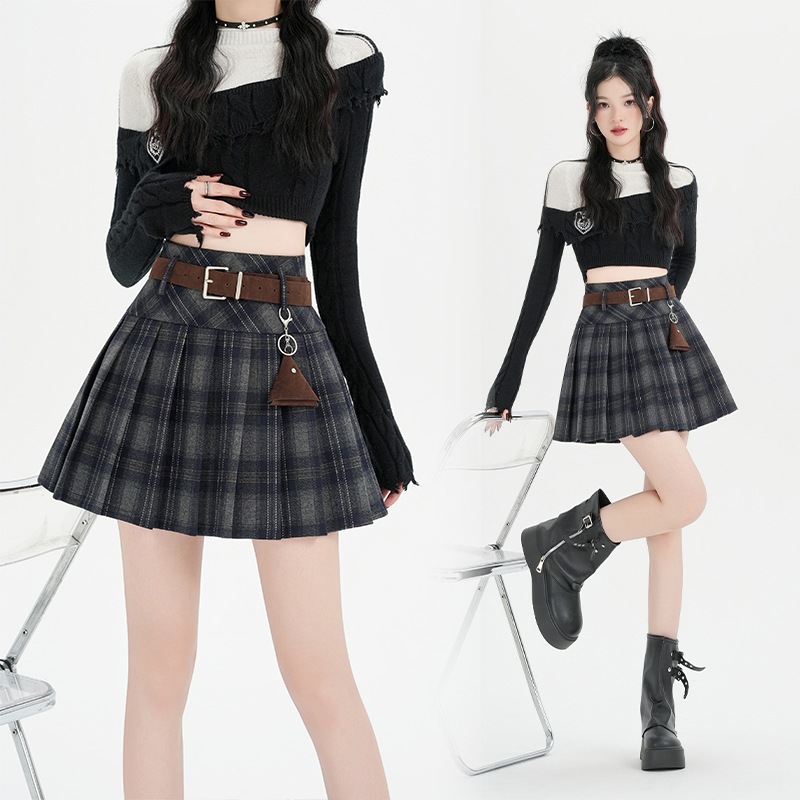 スカート ニューデザイン ギャル ラシャ プリーツスカート ハイウエスト やせて見える A字スカート 気質 シンプル ファッション スカート枚