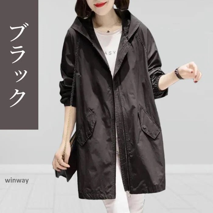 トレンチコート レディース 裏地付き スプリングコート 40代 50代 30代 60代 ウインドブレーカーフード付き 長袖 春