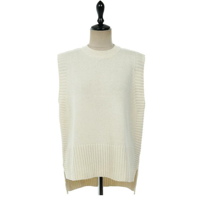 人気沸騰 ニットベスト レディース セーター ノースリープ クルーネック 丸首 無地 ショット丈 シンプル 春 秋 韓国風 体型カバー 通勤 着痩せ 重ね着