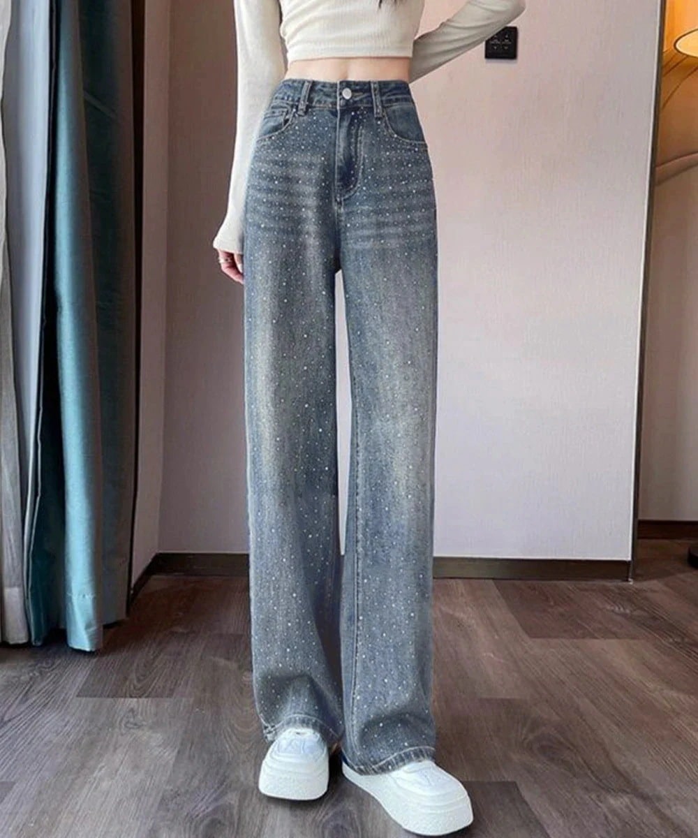 キラキラデニムパンツラインストーンデニム