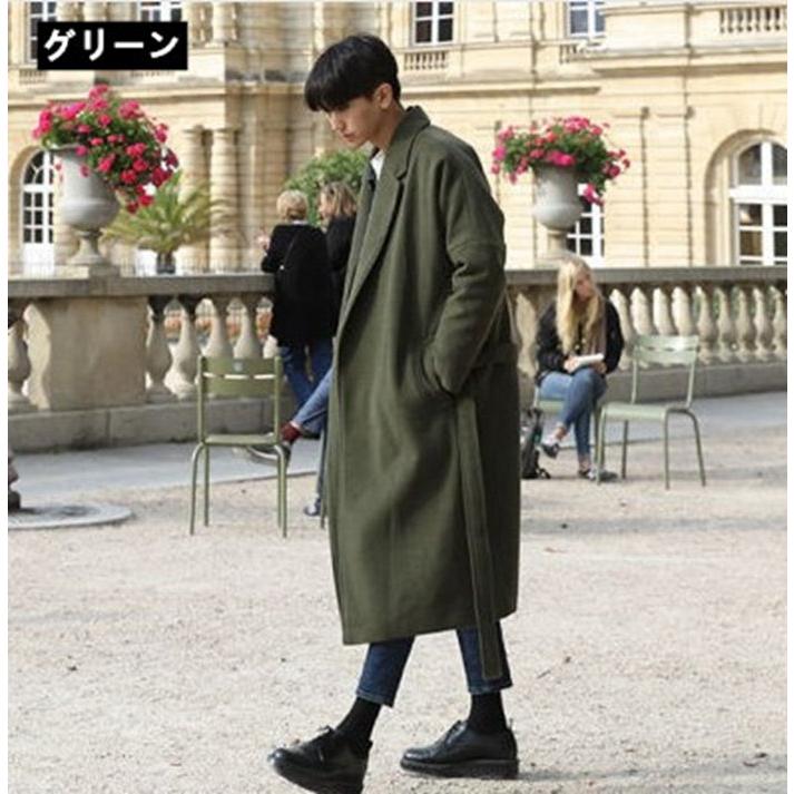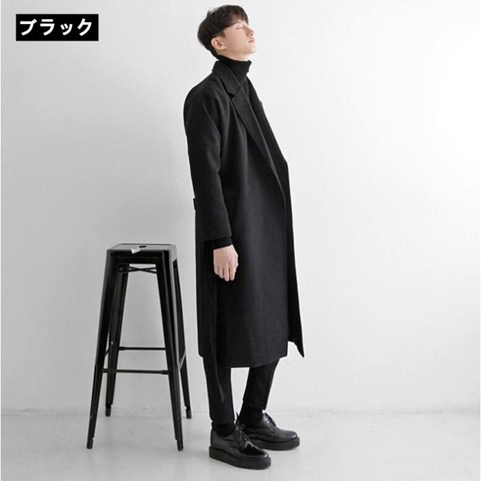 ロングコート メンズ アウター チェスターコート ロング丈 暖かい ベルテッド ベルト付 韓国 ドルマン袖 冬服 秋冬 お洒落