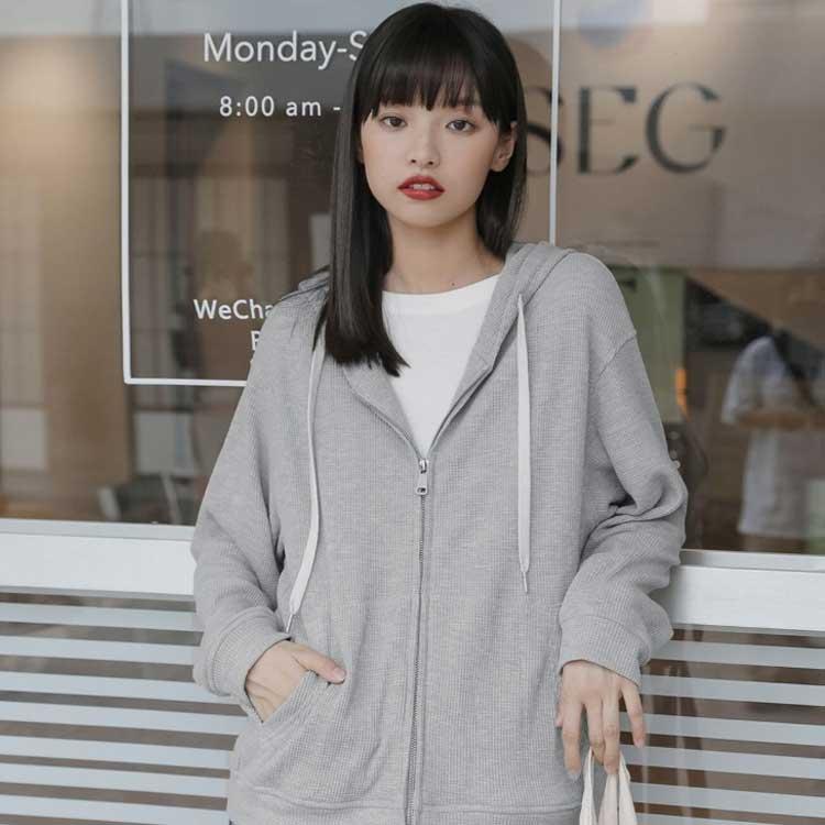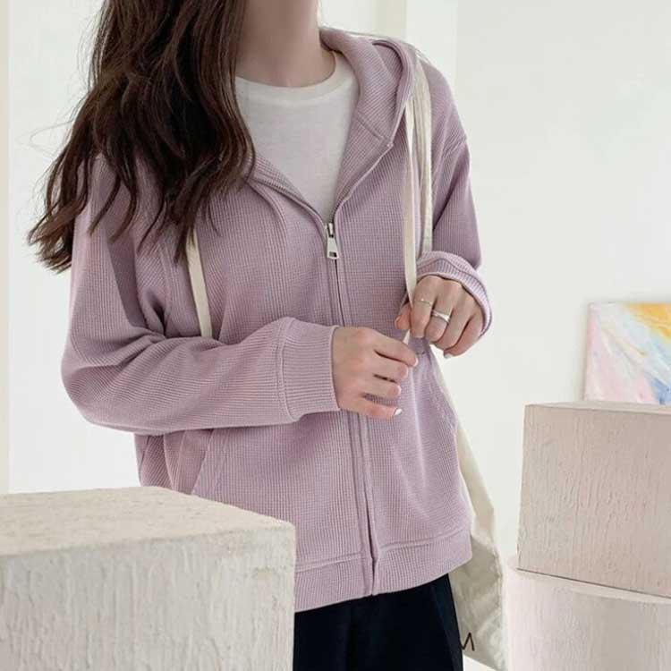 体型カバー アウター パーカー パーカー トップス おしゃれ 超人気 春 スウェット レディース ワッフル 長袖 大人のゆるジップパーカー 大きいサイズ