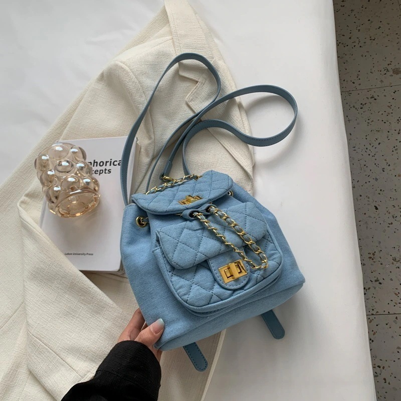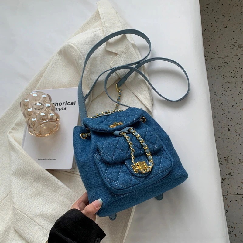 3Wayバックバッグデニムリュックミニバッグ2025新型ファッションバッグバッグ菱格ミニリュックサックの夏のレジャー旅行リュックサック