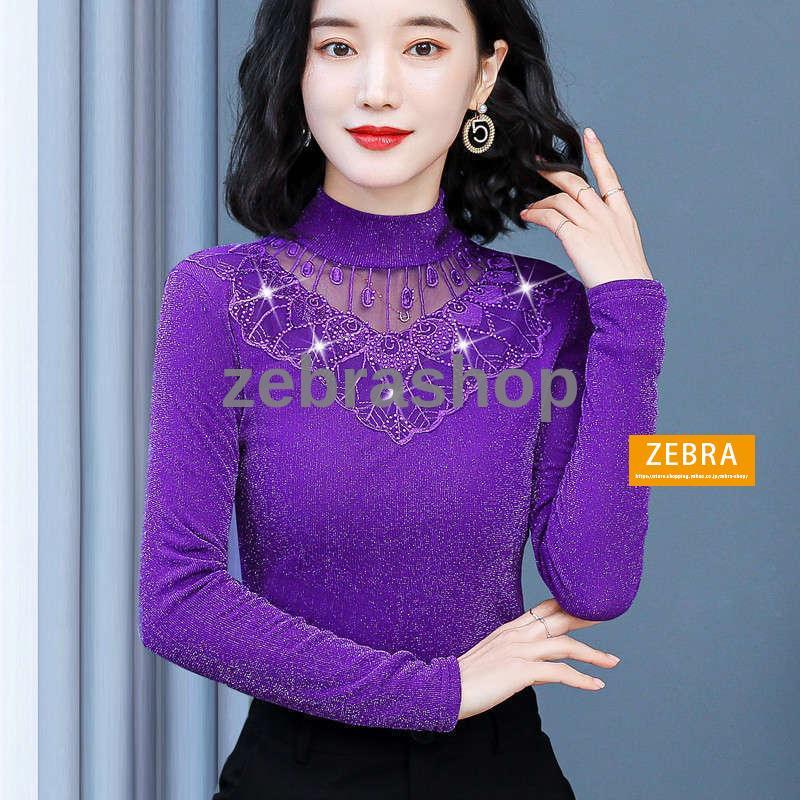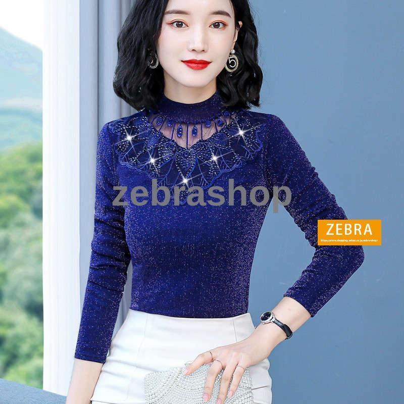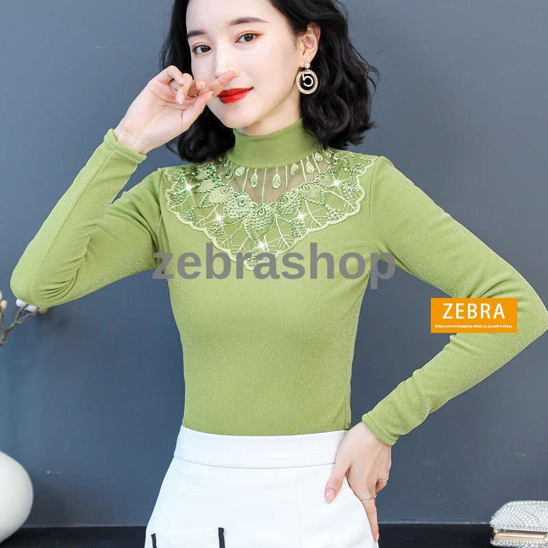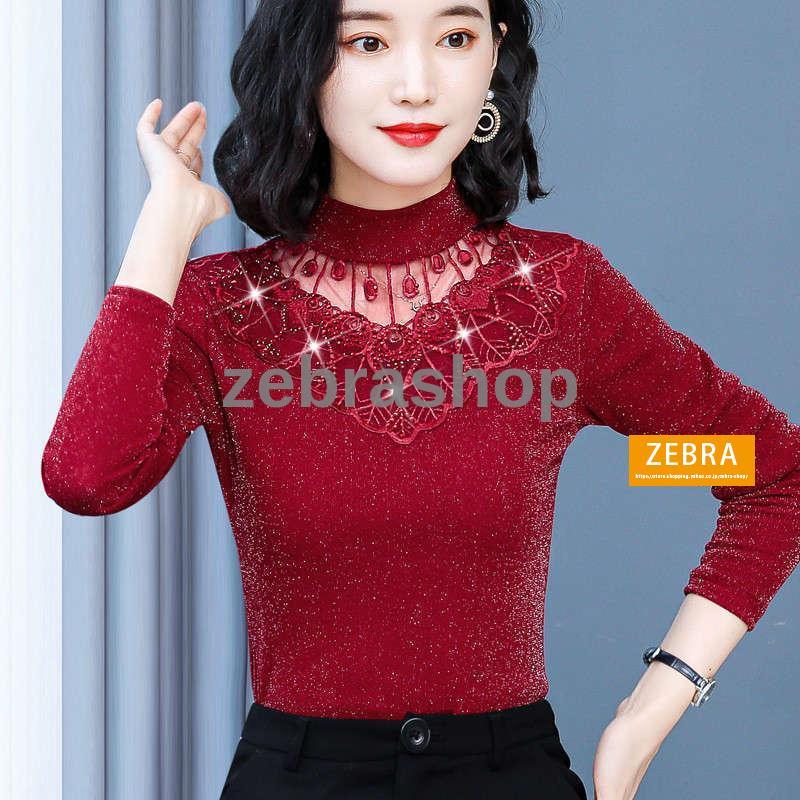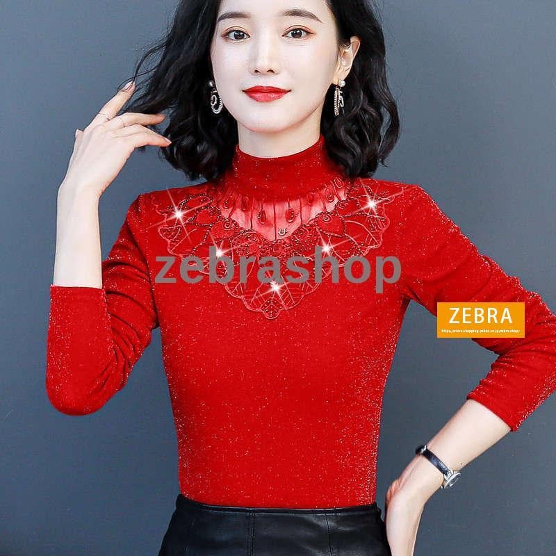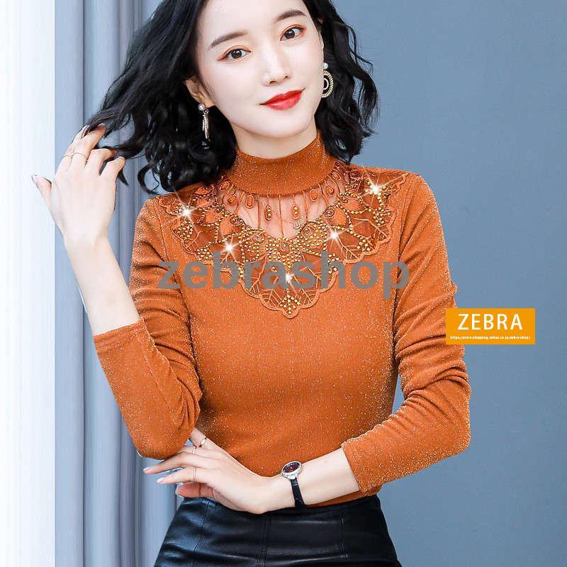 チュールトップス カットソー 秋冬 裏起毛 ハイネック レディース 長袖 インナー ラメ入り 2Type 無地 カラバリ きれいめ ブラック ピンク おしゃれ