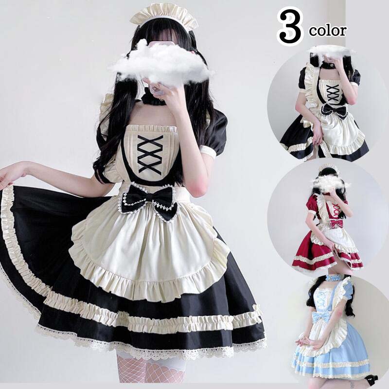 【期間限定激安販売】シャークメイド服 コスプレ 衣装 レディース メイド フリル 個性的 ミニ 白 黒 ブラック レッド カチューシャ付き ハロウィン 大きいサイズ ガーリー ロリータ コスチューム