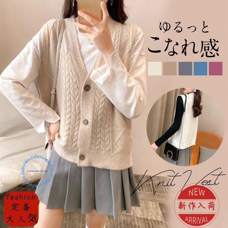 新登場! ニットベスト レディース チョッキ トップス Vネック ボタン ゆったり 前開け ベスト ジレー セーター 無地 秋コーデ カジュアル 重ね着