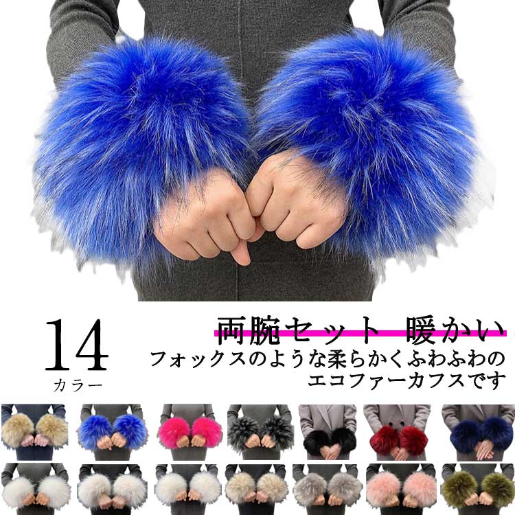 両腕セット ファーカフス レディース 袖口 ファー アームカバー ふわふわ カフス 防寒 暖かい あったか 手首 左右ペア ファー アームウォーマー ファーバングル 女の子 大人 ブレスレット