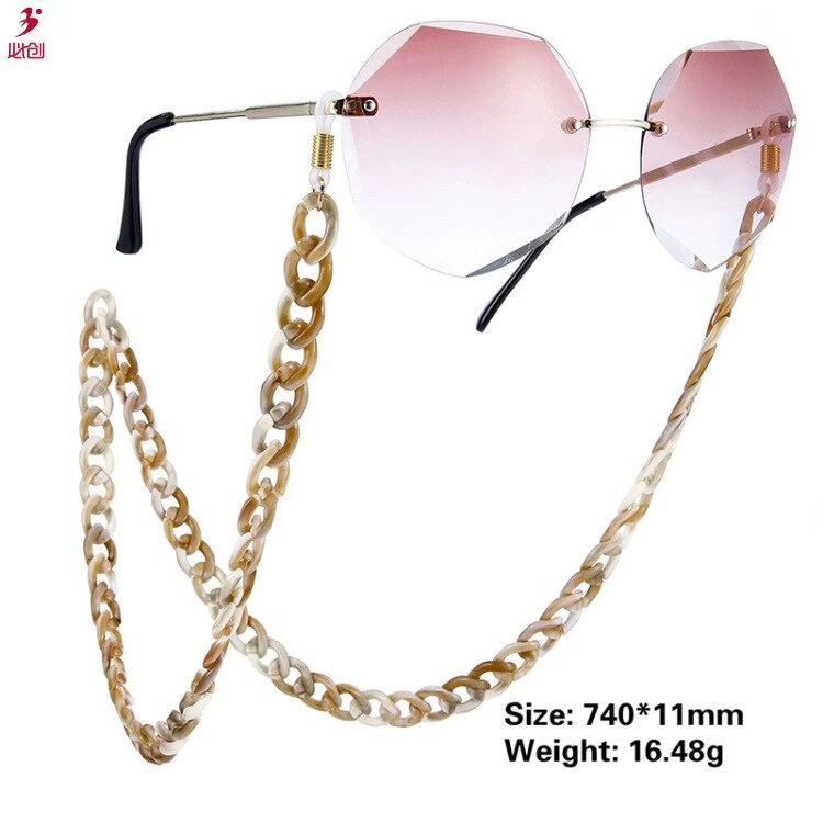 マルチカラーアクリルフラットシェイプアクリルメガネミラーチェーン多目的ネックレスファッションブルー