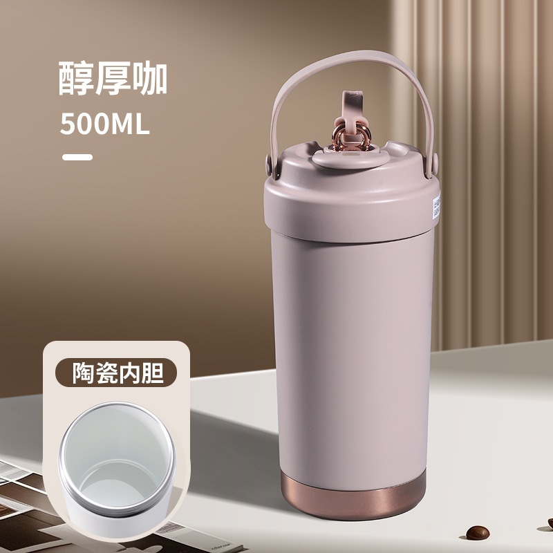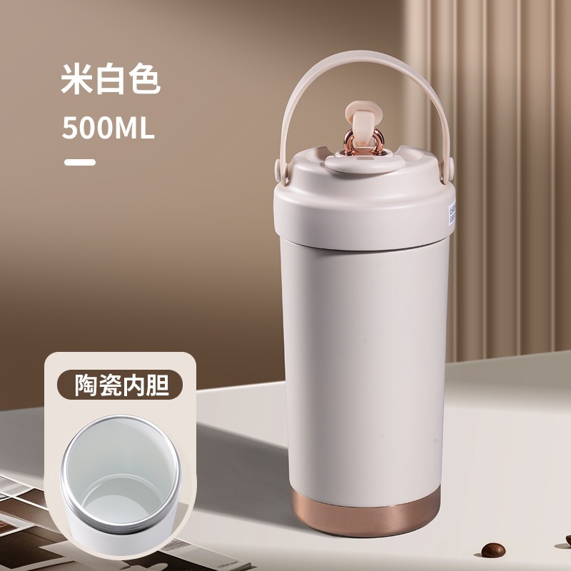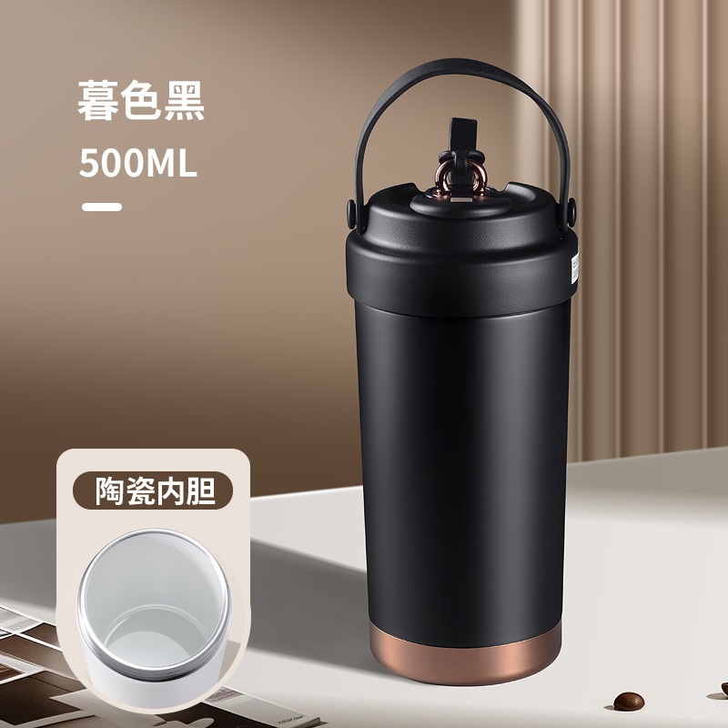 セラミック セラミックコーティング 真空断熱 水筒 二重構造 マグボトル 持ち運び 大容量 ストロー付き 保温 保冷 500ml コーヒーカップ おしゃれ ステンレス製 ワンタッチ 直飲み