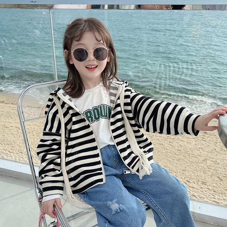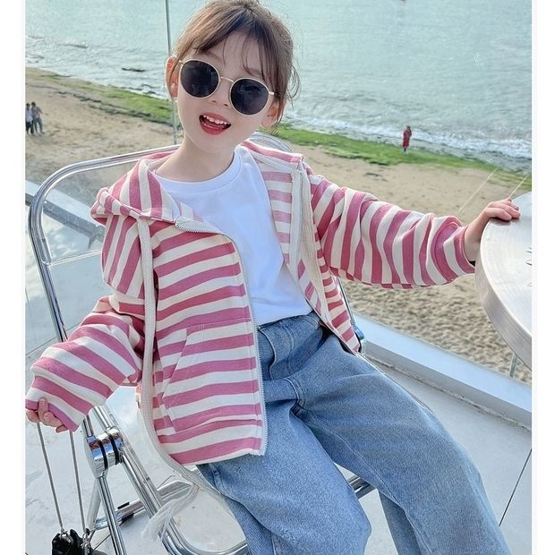 フード付きジャケット スタイル ストライプ柄トップス スタイリッシュなカーディガン ベビー服 ベビー服 子供服 ベビー用品 子供ワンピース ベビー服 女の子