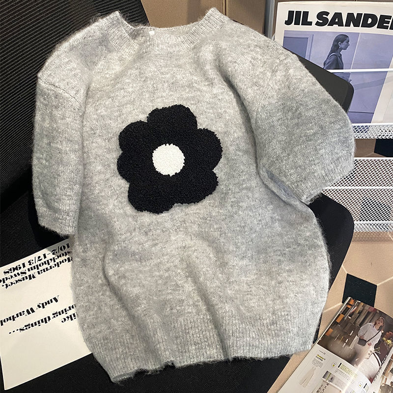 セーター3日で出荷でも着れるサマーニット ニットウェア半袖ニットシャツ 新作 Tシャツ 甘い花柄ニットシャツ