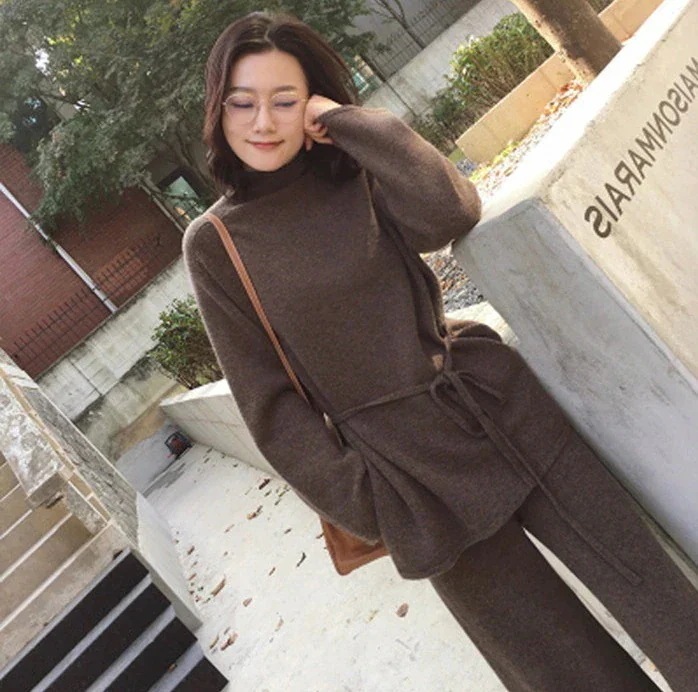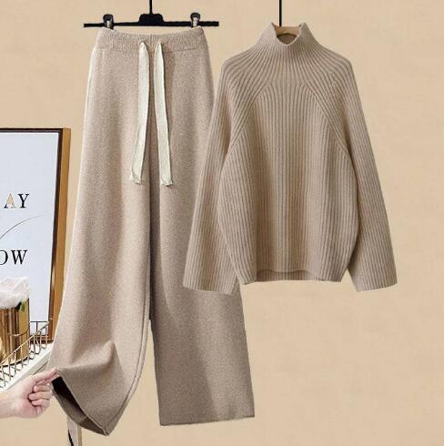セットアップ ニットパンツ 新作ニットスーツレディースオーバーサイズゆったりセーターニットワイドパンツ タートルネックニット