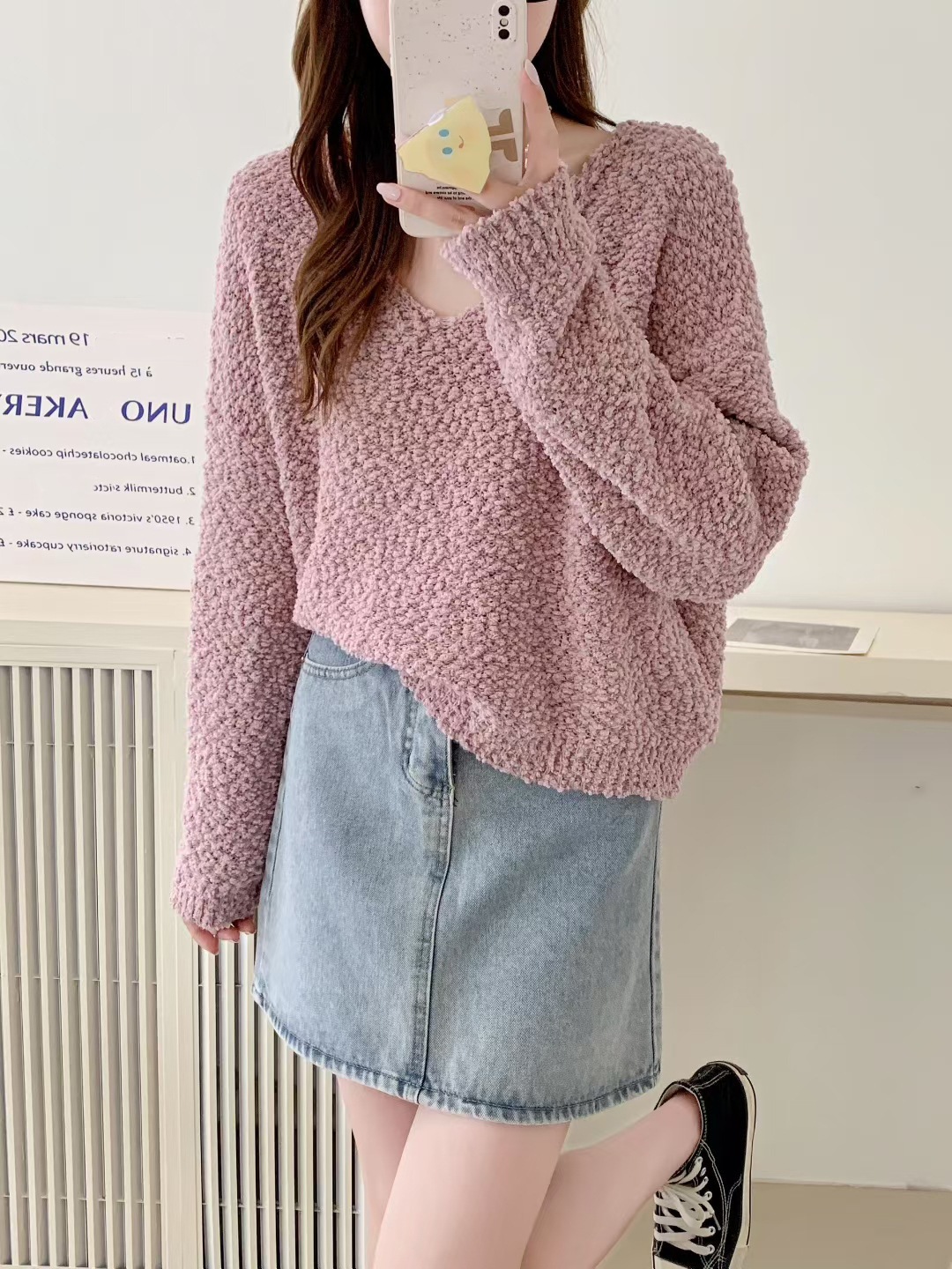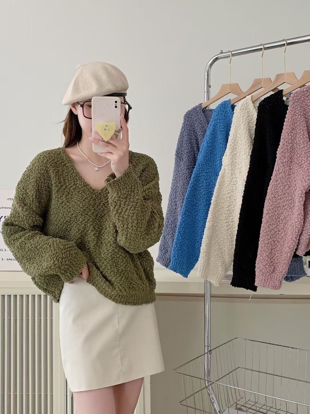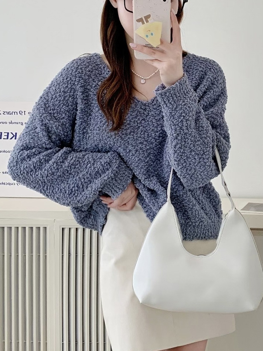 2025シンプルニットトップス女パステルカラーVネックセーターヘッダー