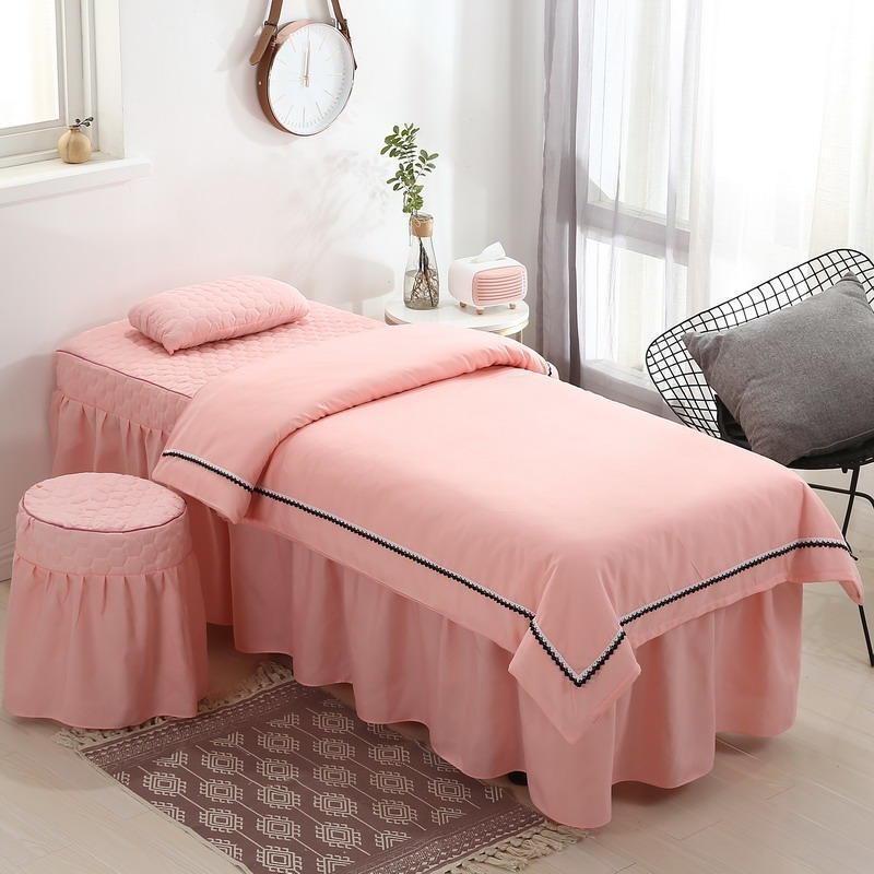 エステベッドカバー 5点セット マッサージ ビューティーサロン ベッドカバー 穴あり フリル付ベットスカート スクエア ラウンド 感 美容院 整体院 SPA