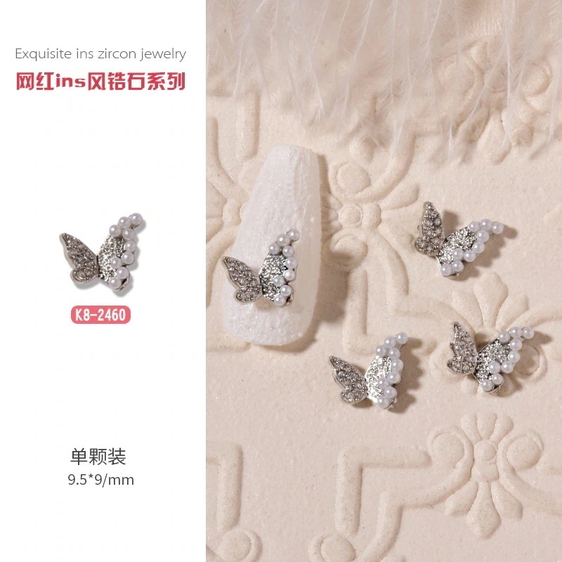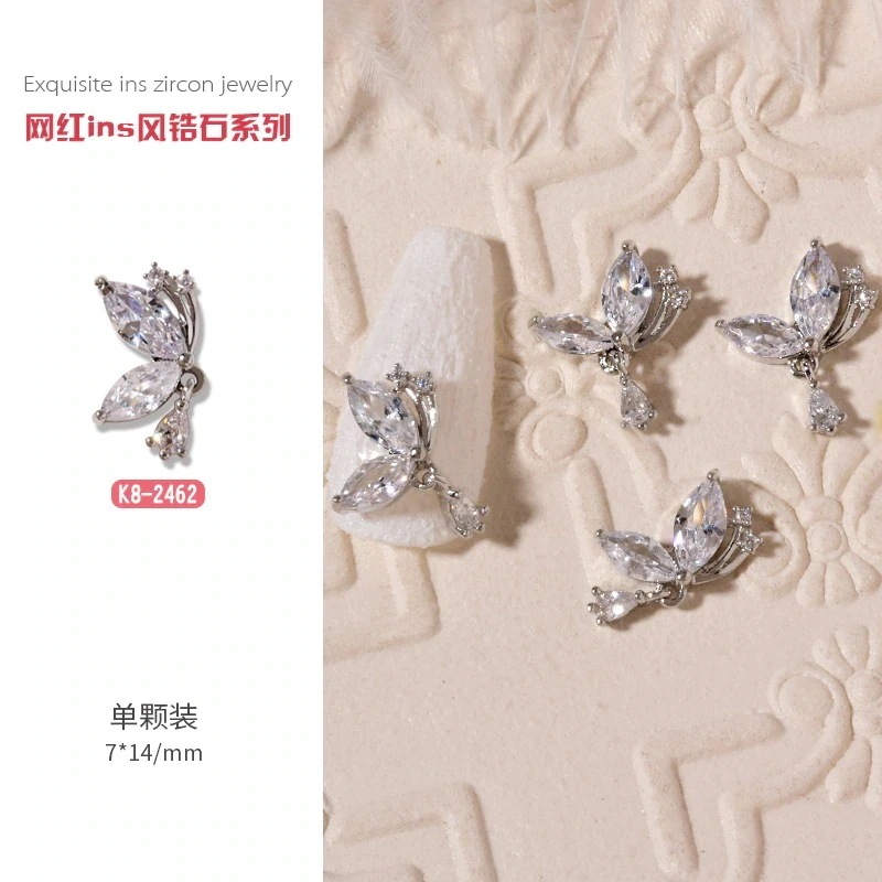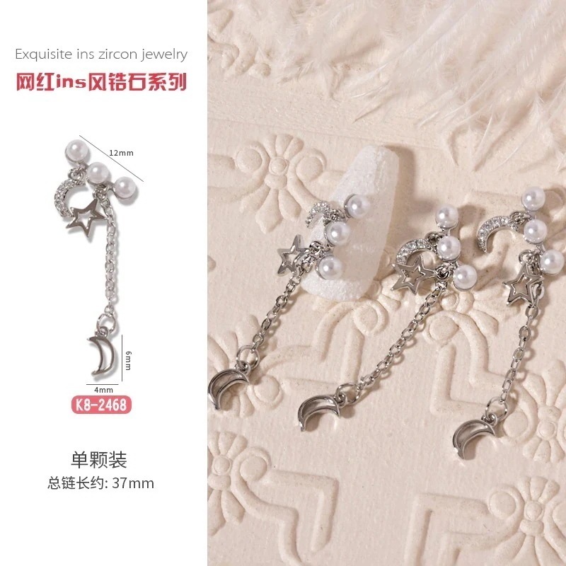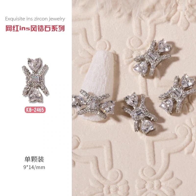 Lzネイルアクセサリー銀色の星月ウサギジルコニウム爪飾り小さなハート蝶チェーンダイヤモンド