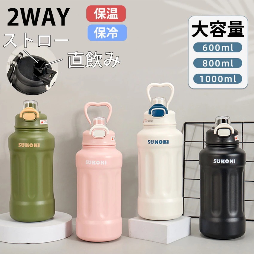 タンブラー ストロー付き 持ち運び 取っ手 水筒 直飲み 取っ手 こぼれない タンブラー 保温 保冷 タンブラー 蓋付き 水筒 マグ スポーツ オフィス ジャグ 2way 316ステンレス
