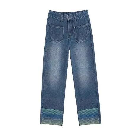 春夏新作 女子用 星空柄カラーブロックジーンズ ファッションハイウエスト ストレートワイド マルチマッチ レラックスフィット 九分丈パンツ デニム ジーンズ