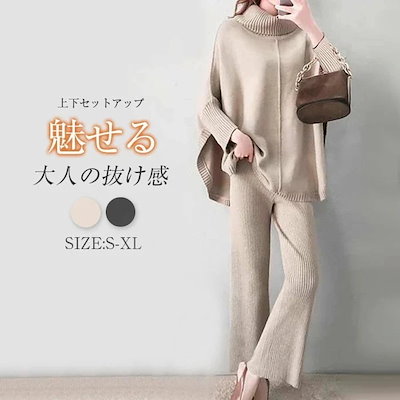 【人気新作】【新デザイン登場】セットアップ レディース 秋冬 ニット 黒 カジュアル きれいめ パンツ 40代 オシャレ 大きいサイズ 着痩せ 2点セット ニット 秋冬セット パンツスーツ ニットセ