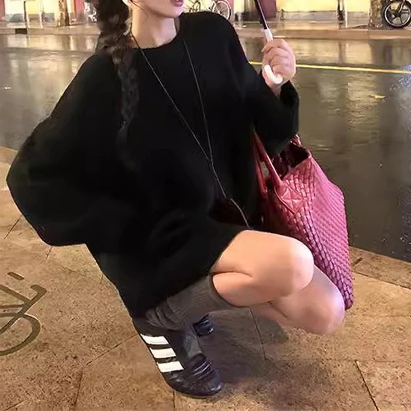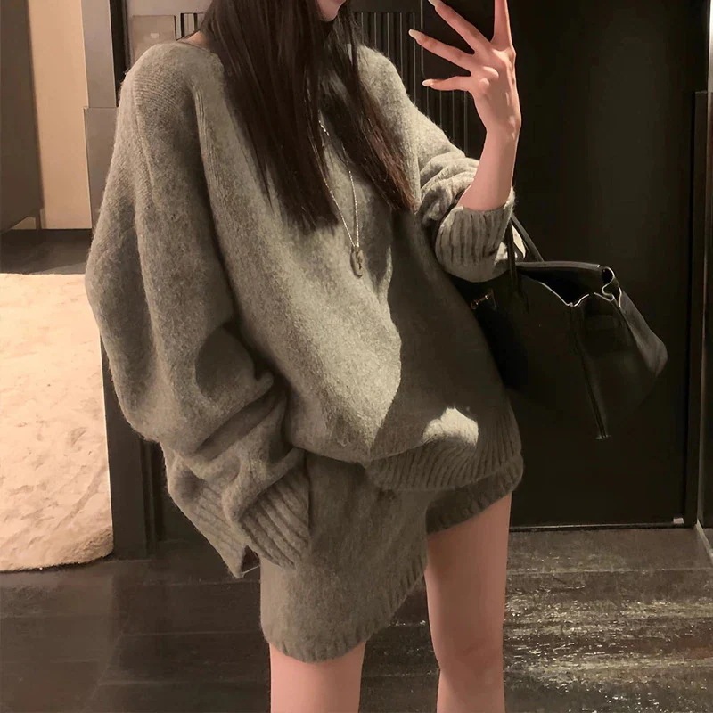 セットアップ ラウンドネックニットショートパンツセットセーター冬新作ゆったりツーピース