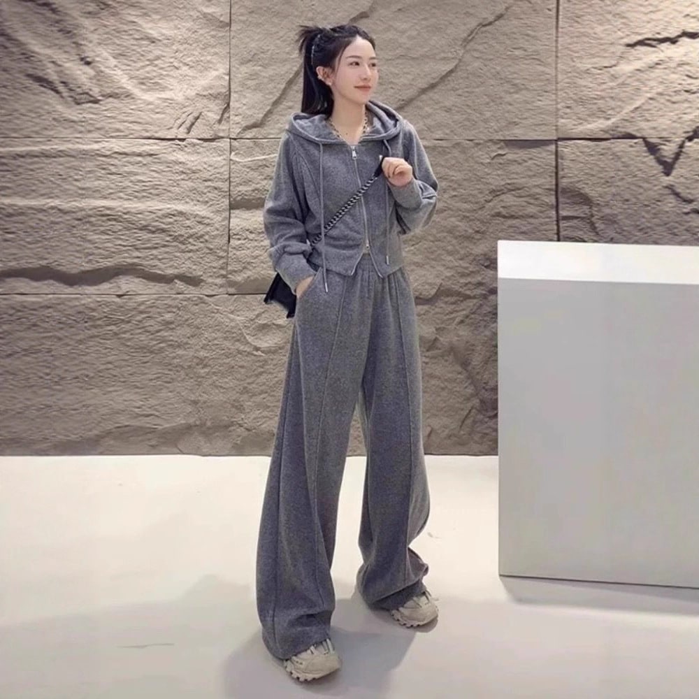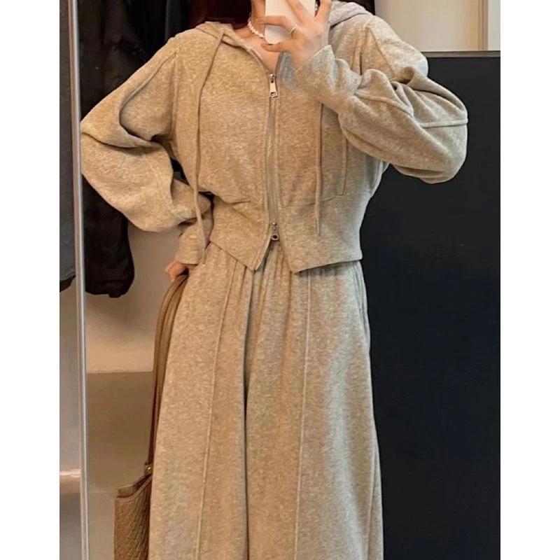 ぽっちゃり体形向けレディース秋カジュアルスポーツカシミアセット韓国風高級韓国風ゆったりツーピース