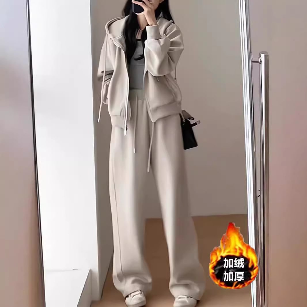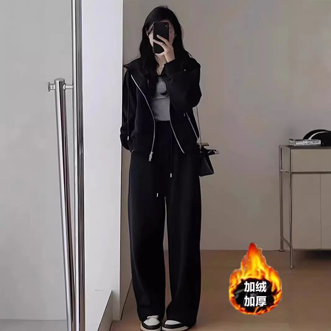 高級感スポーツセット 女性用 秋冬 ゆったり 痩せて見える 学生向けフーディカジュアル 裏起毛厚手2点セット