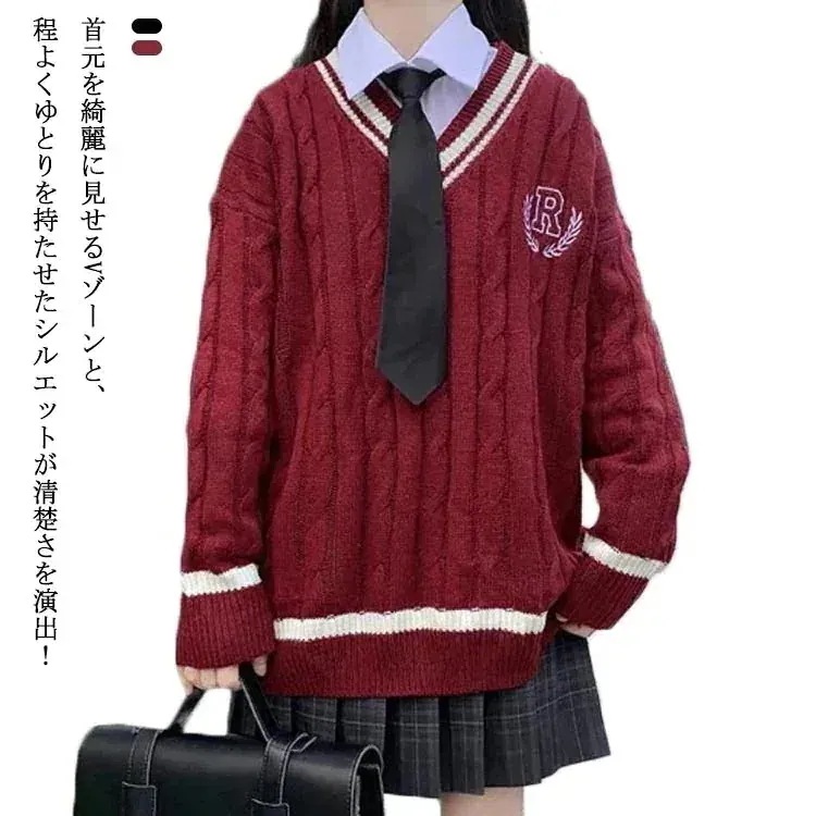 韓国 ライン入り スクール セーター スクールカーディガン 女子 制服 ゆったり Vネック プルオーバー ニットカーディガン 羽織り スクールセーター 学生服 高校生 中学生 黒