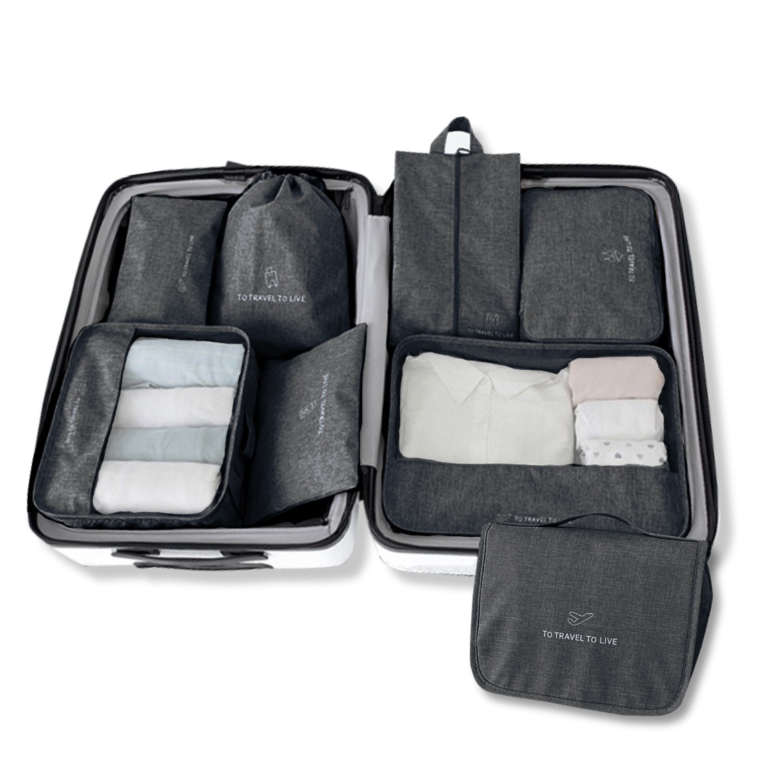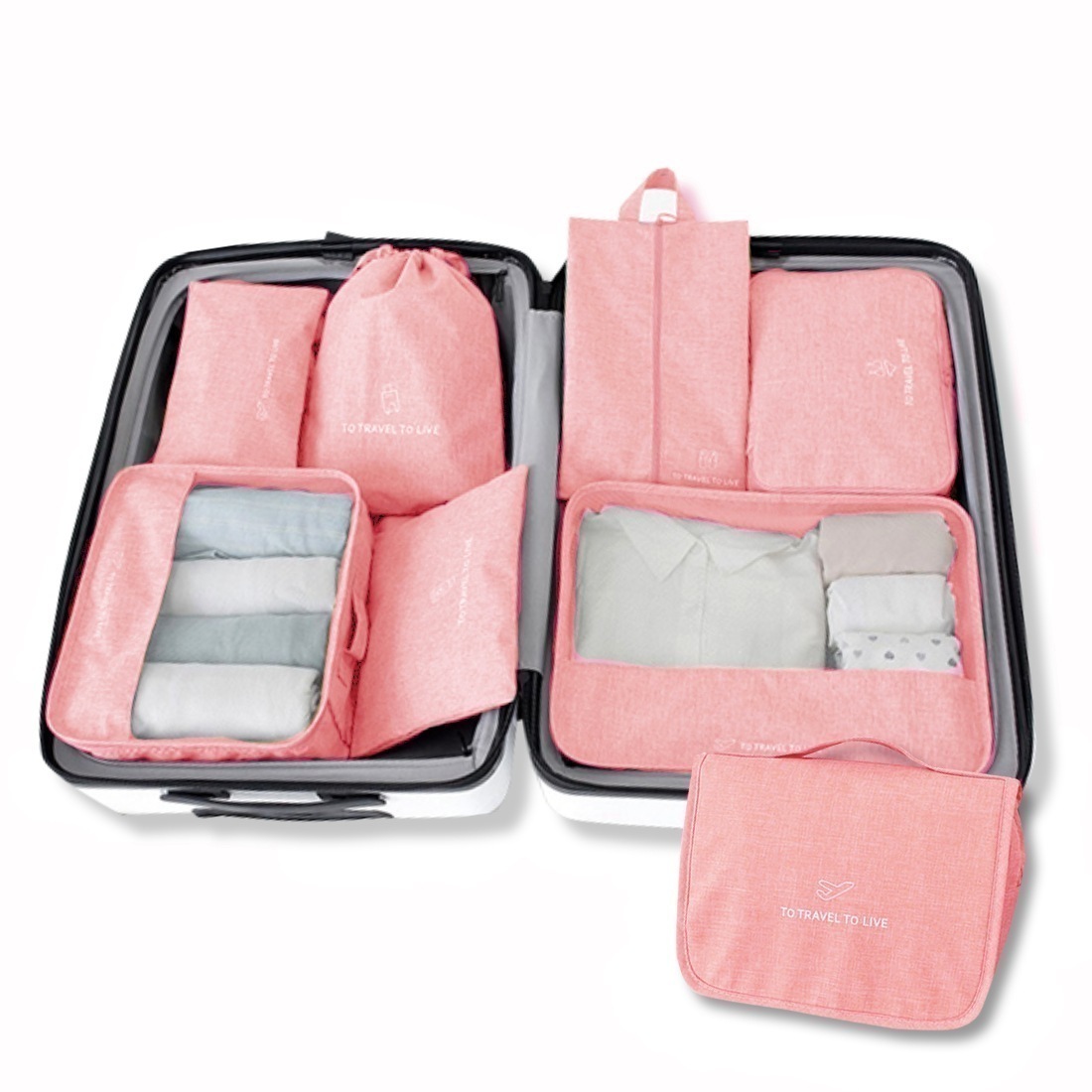 [迅速な配達]8点セット トラベルポーチ 吊り下げ バスルームポーチ パッキング ポーチ 旅行用品 化粧ポーチ インナーケース トラベルポーチセット