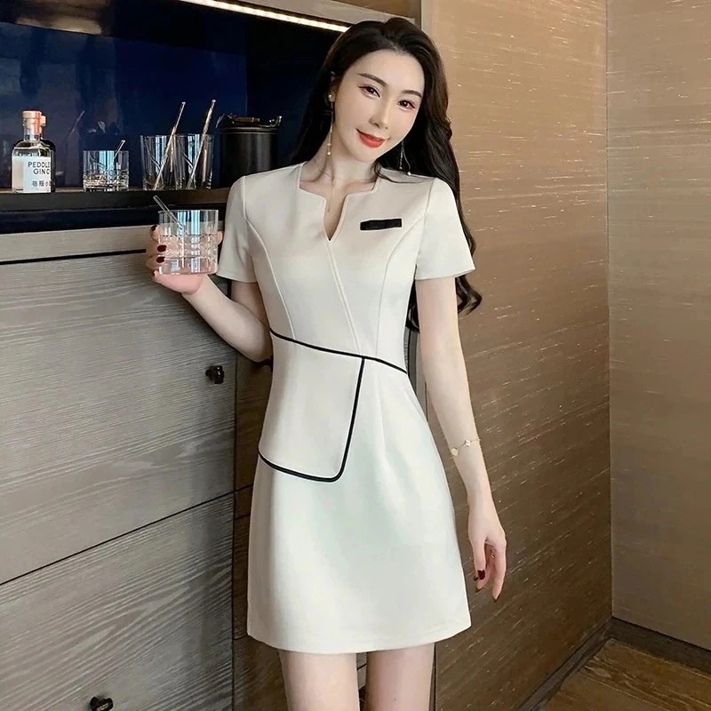 [迅速な配達]美容室制服エステ制服 ユニフォーム エステ サロン通勤 タイトスカートレディース 女性 制服 ワンピース 半袖 ジャケット セットアップ