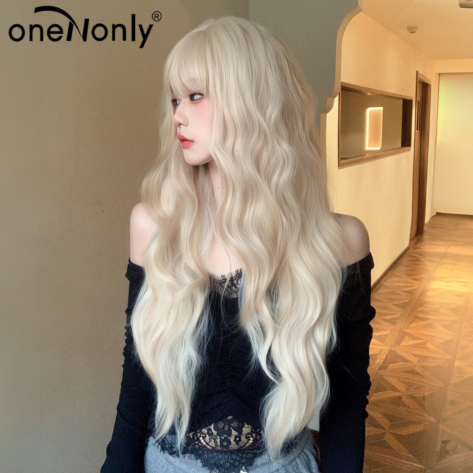 [迅速な配達]韓国風かつら レディース ロングカーリーヘア 前髪 ビッグウェーブ シミュレーション ナチュラル ホワイトブロンド 織物 ファイバー リアルウィッグ