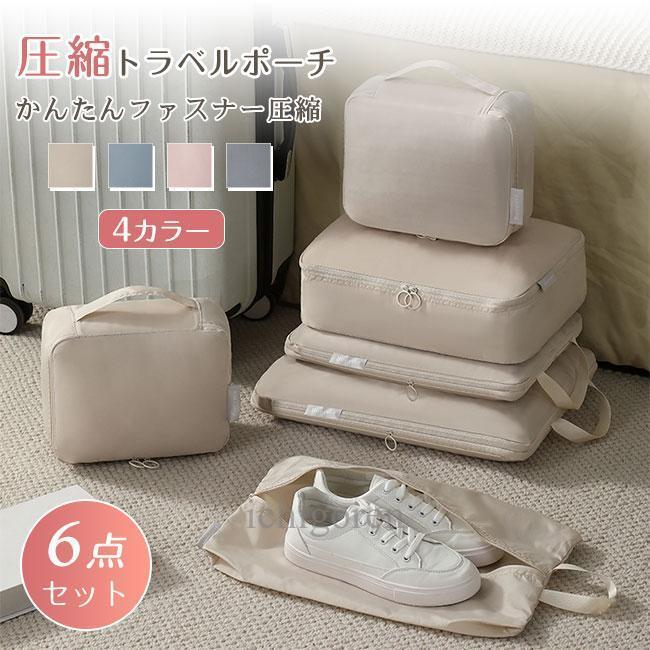 [迅速な配達]トラベルポーチ トラベルバッグ 圧縮バッグ 6サイズ セット 衣類 靴 収納 ポーチ バッグインバッグ 旅行用 仕切り 水洗い可