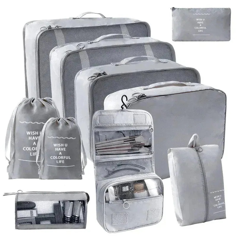 [迅速な配達]トラベルポーチ アレンジケース 10点セット パッキングポーチ 洗面用具 旅行用 出張 衣類 整理 便利グッズ 靴用 下着収納 吊り下げ 小