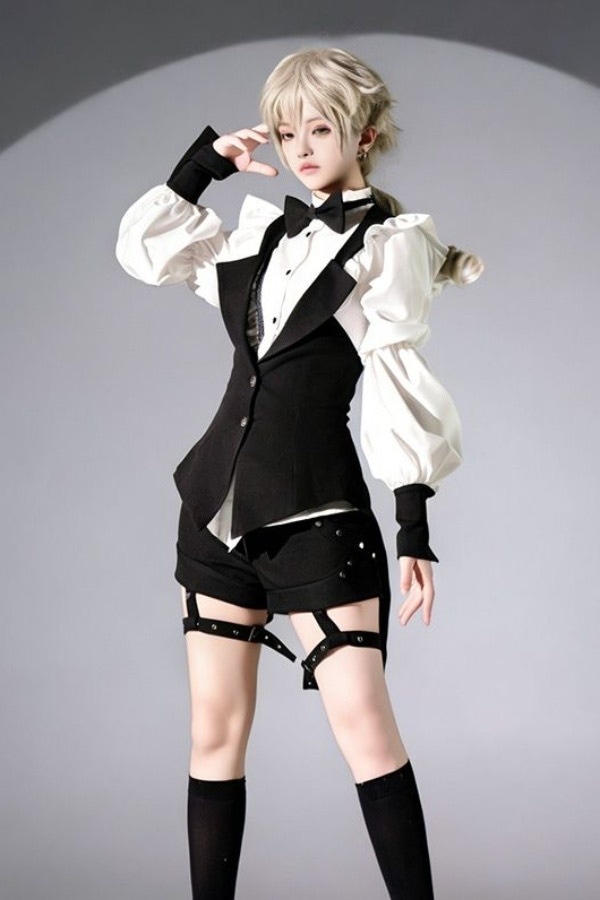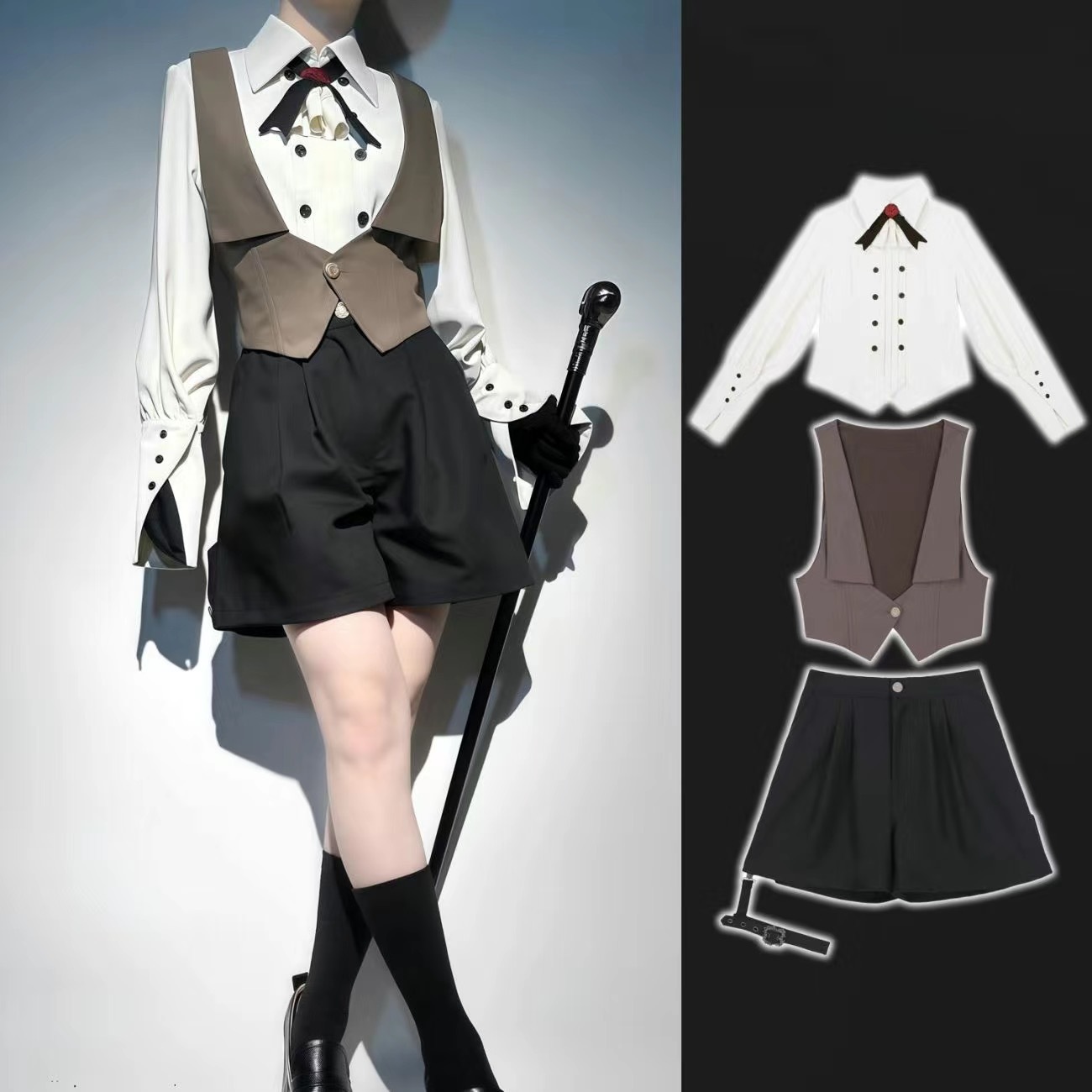 [迅速な配達]ダークゴシックスタイルの王子様シャツレースのショートパンツテールベストロリータスカートロリータ コスチューム
