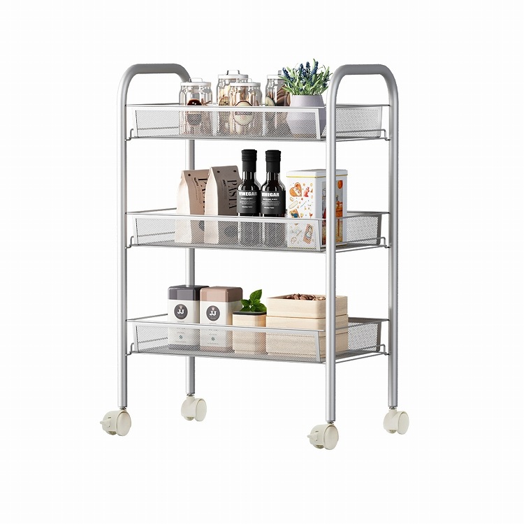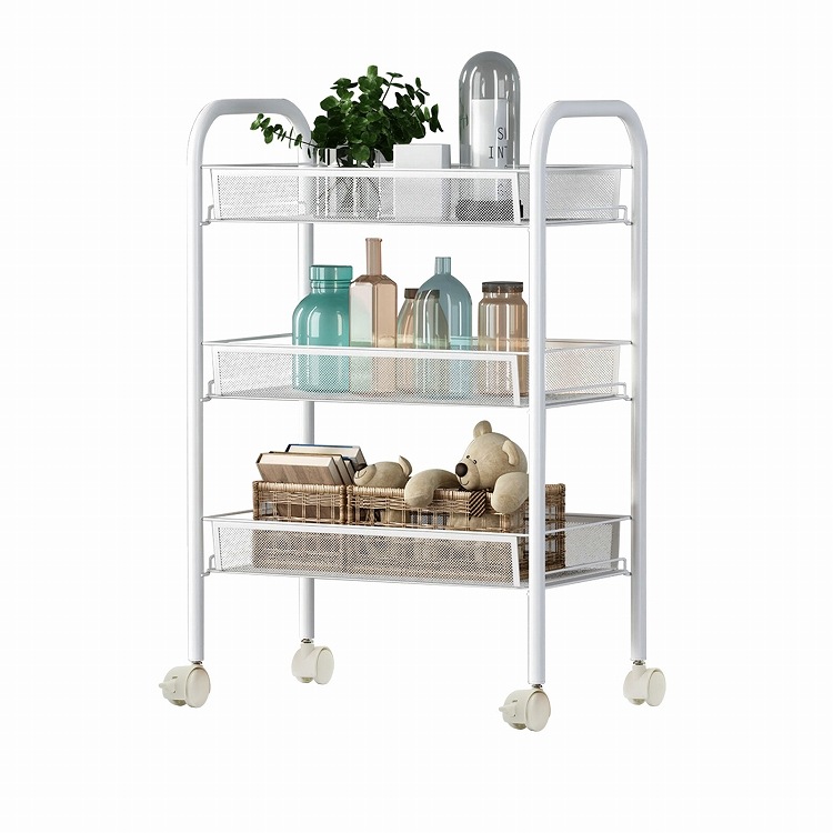 3日で配達 即売 キッチンワゴン キャスター付き スリム 3段 スチール おしゃれ 頑丈 トローリー 収納 隙間 バスケット カウンター テーブル メッシュ 作業台 ラック カート