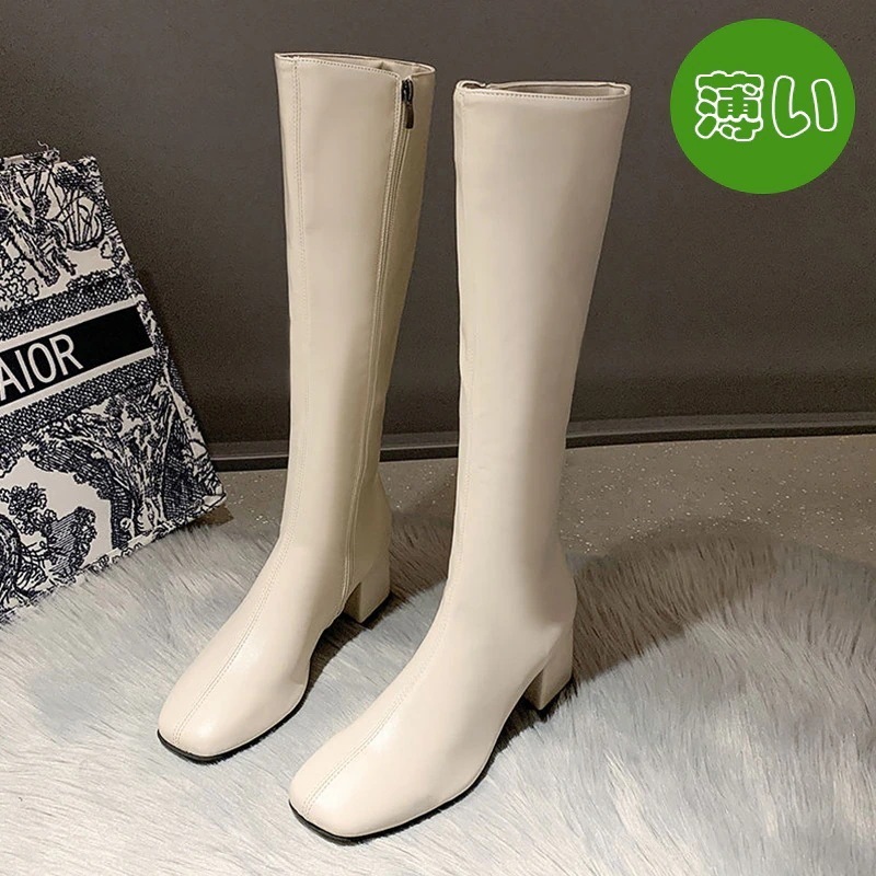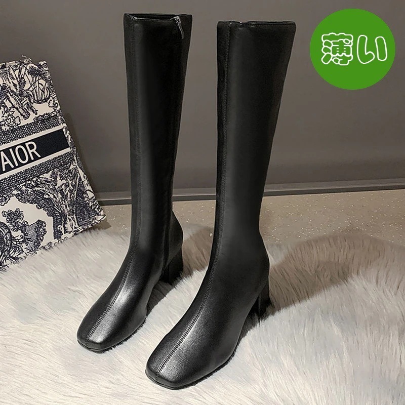 [迅速な配達]人気の網紅 オールマッチのハイヒールソフトレザーブーツ厚手のヒール厚底 靴 しい秋と冬だが膝の薄いナイトブーツ女 美足 身長アップ 歩きやすい長靴 [6cm]