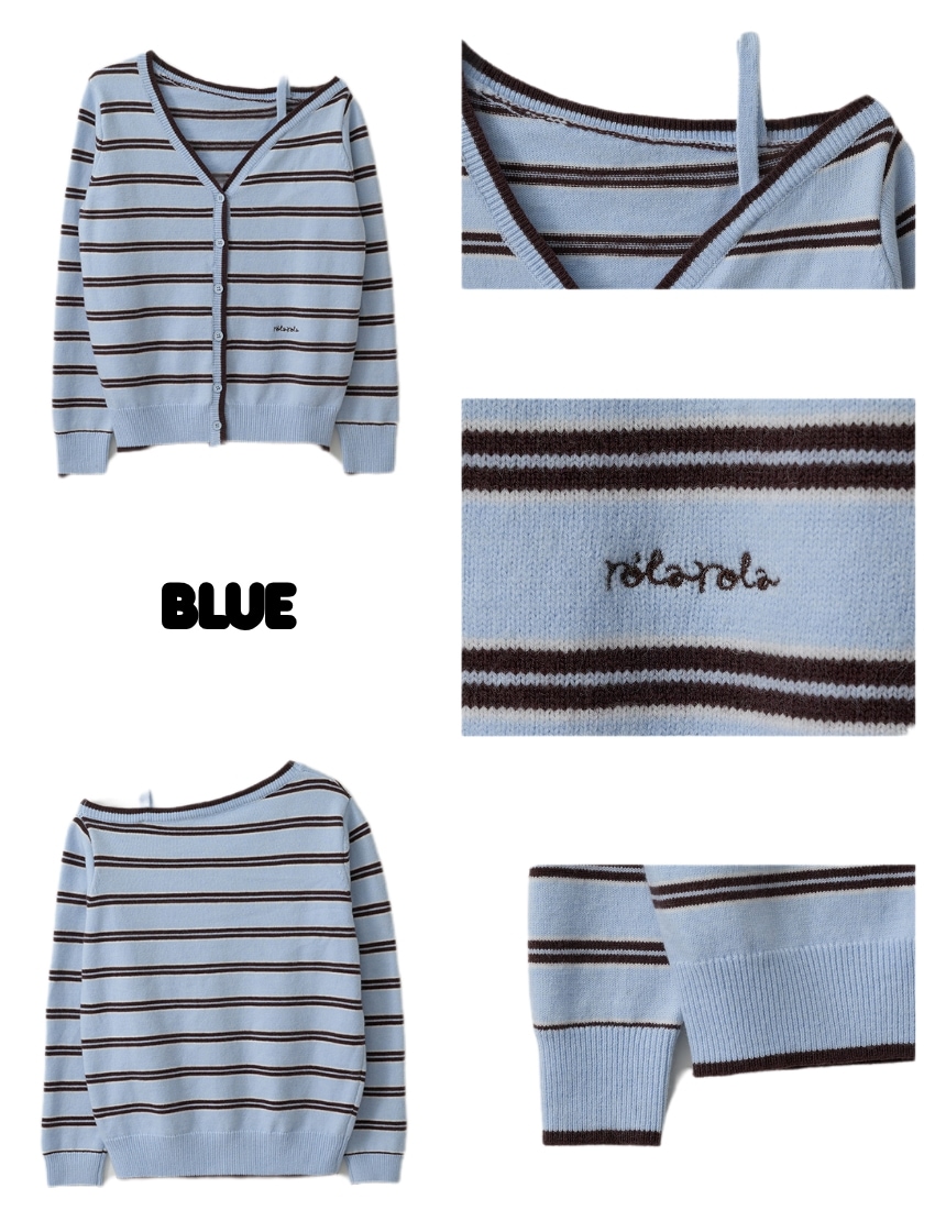 rolarola韓国限定 韓国人気アイドル 着用 流行 ファッショントレンド 女性上着 長袖ONE OFF SHOULDER STRIPE CARDIGAN(3カラー)