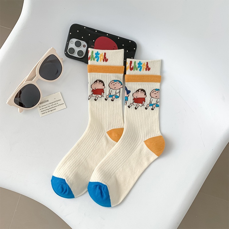 イラスト趣味色合わせ女性靴下漫画綿靴下男女中ストッキングアニメ少女外着色合わせ韓国系ファッション靴下