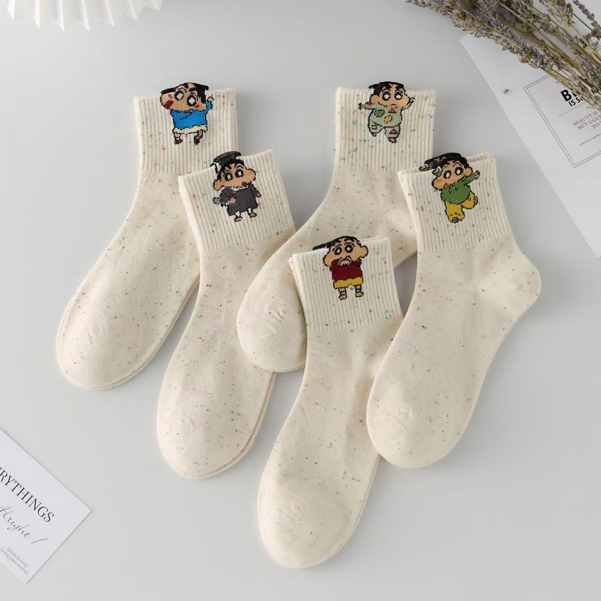 クレヨンの小さい新しい靴下の女性の立体の漫画のアイデアの糸はかわいいです