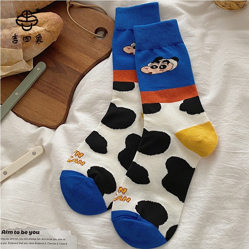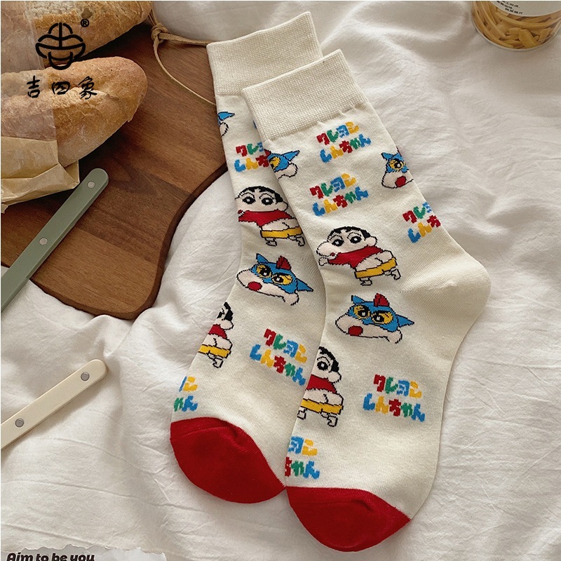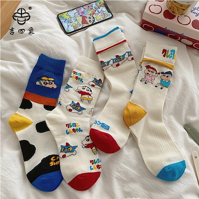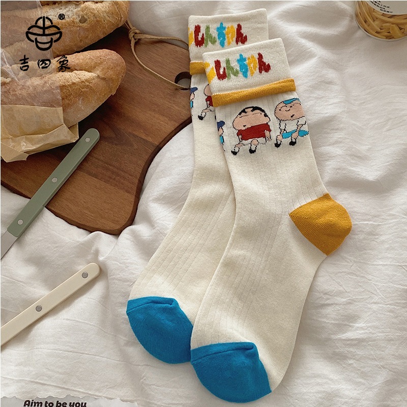 吉四象の靴下の女性の新型の韓国版の漫画のクレヨンの小さい新しいinsの風の精櫛の綿のかわいい潮流の積み重ねの靴下