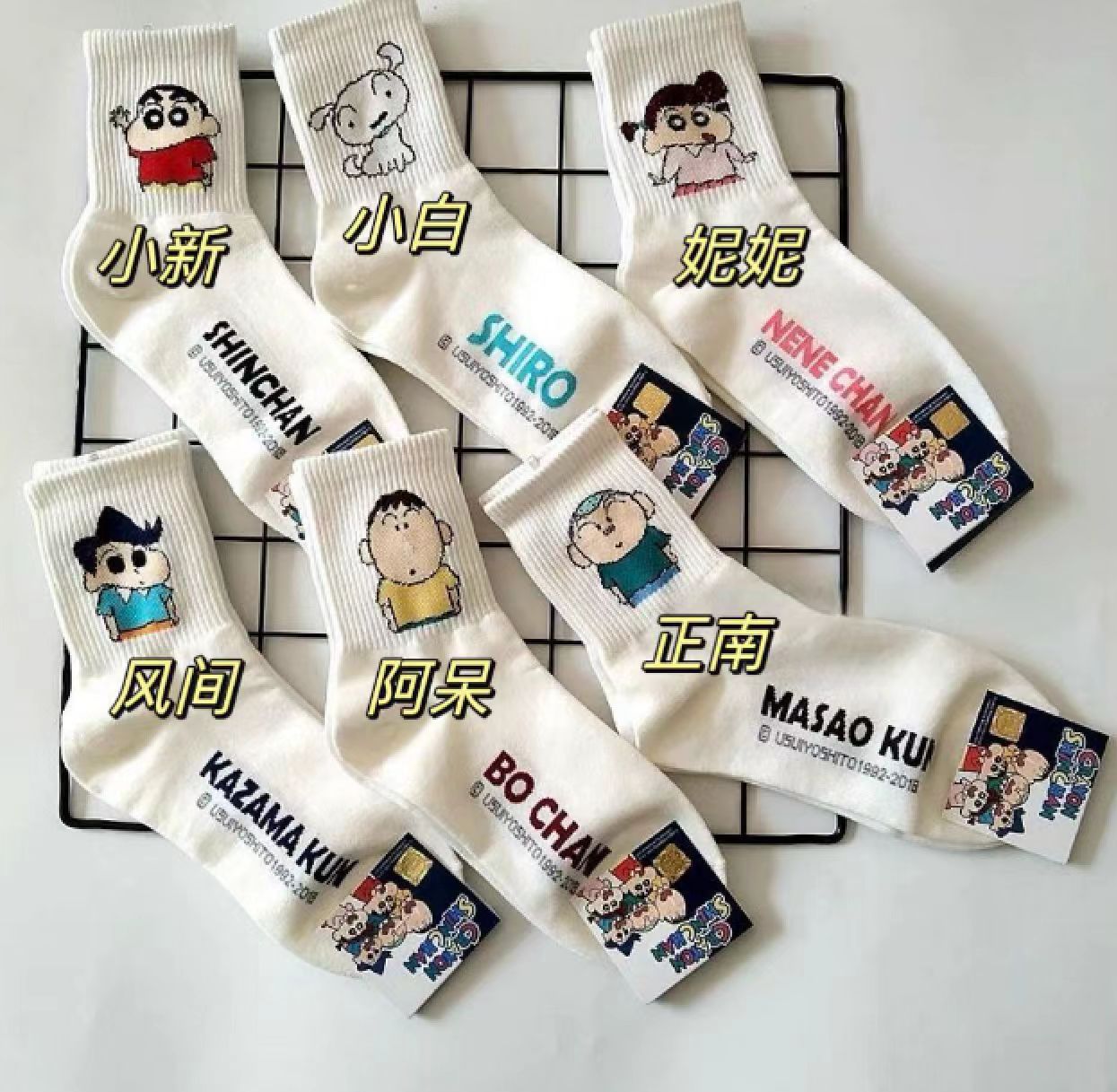 夏のファッションモデルのアニメのかわいい図案のスポーツの靴下の春夏の項の韓国の東門のクレヨンの小さい新しい中筒の靴下の子供