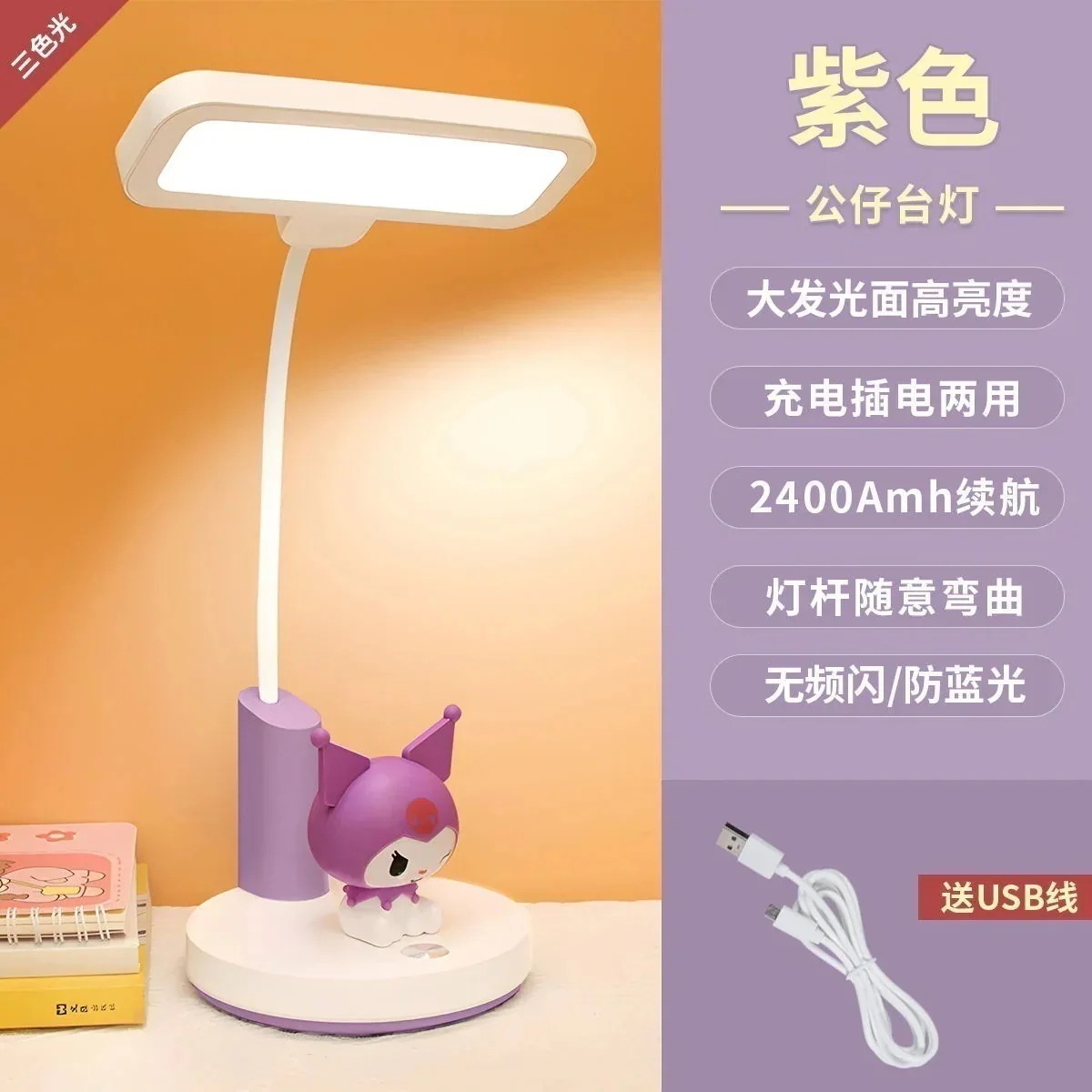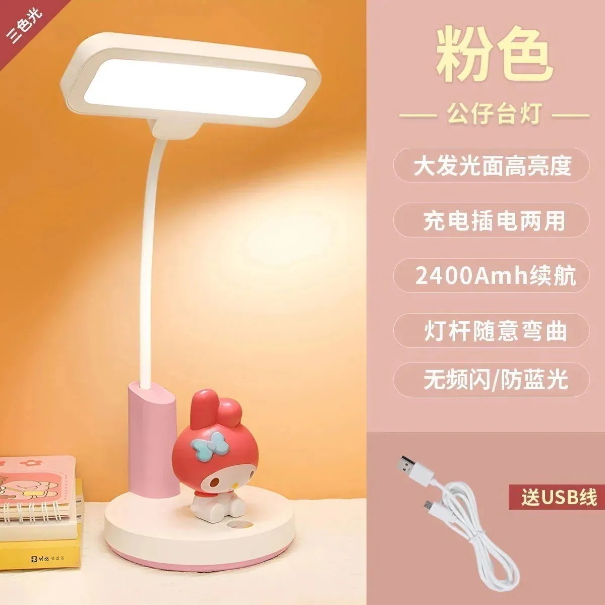 超人気 高評価!!Ins風サンリオ電気スタンド可愛い子供学習アイガード学生寮デスクライト充電式ベッドサイドランプ20%OFF