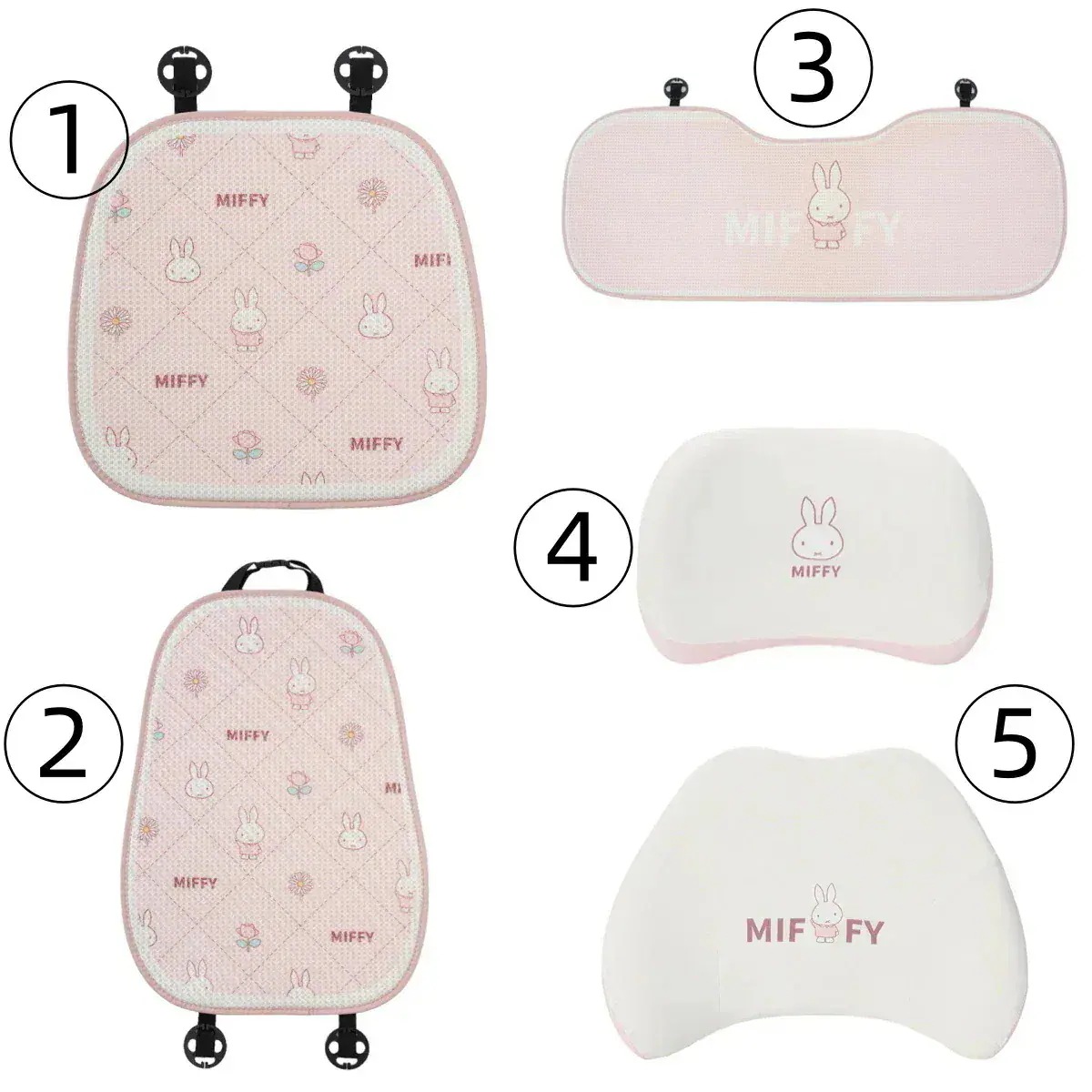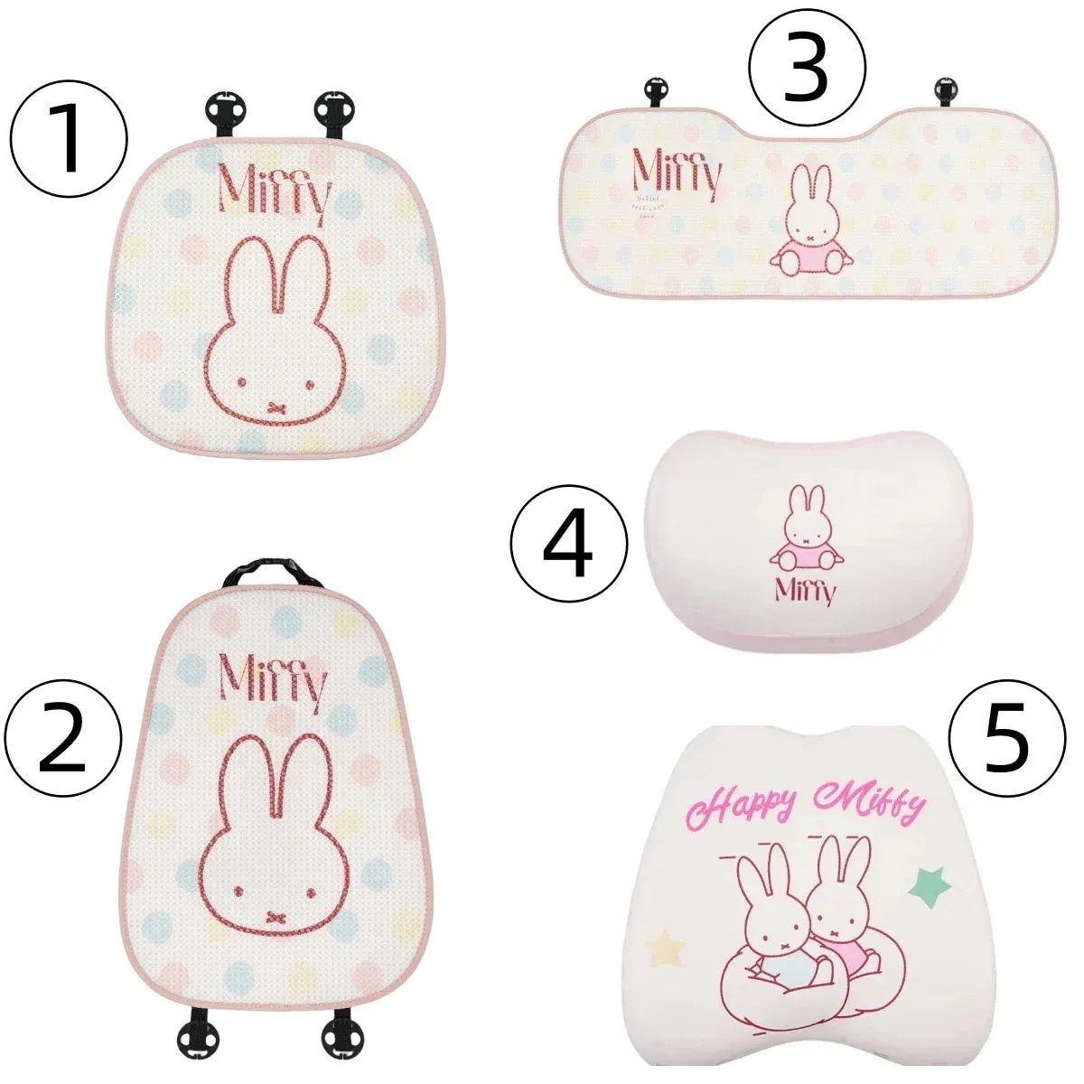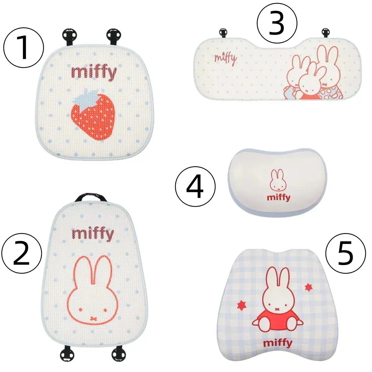 [12 Types]ミッフィーラビットクッションカークッションサマーアイスシルク通気性カークッションかわいい漫画の快適なカークッション車用座布団