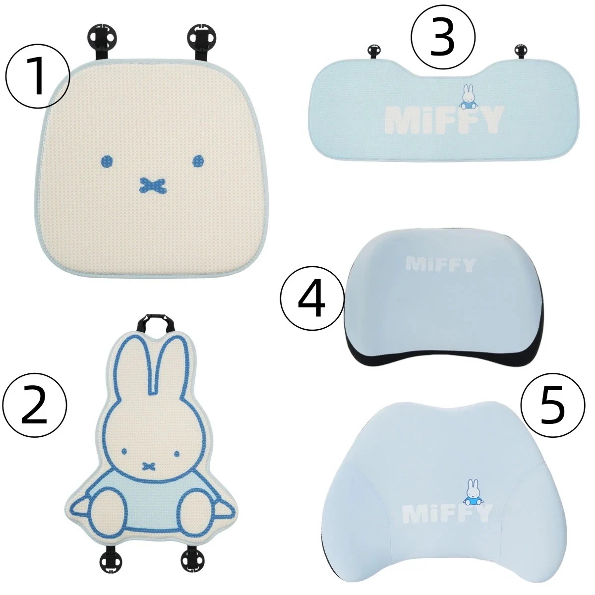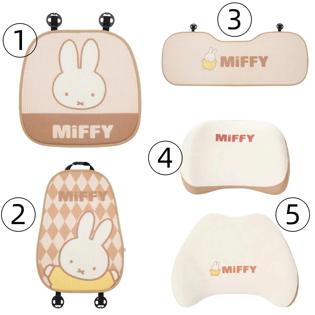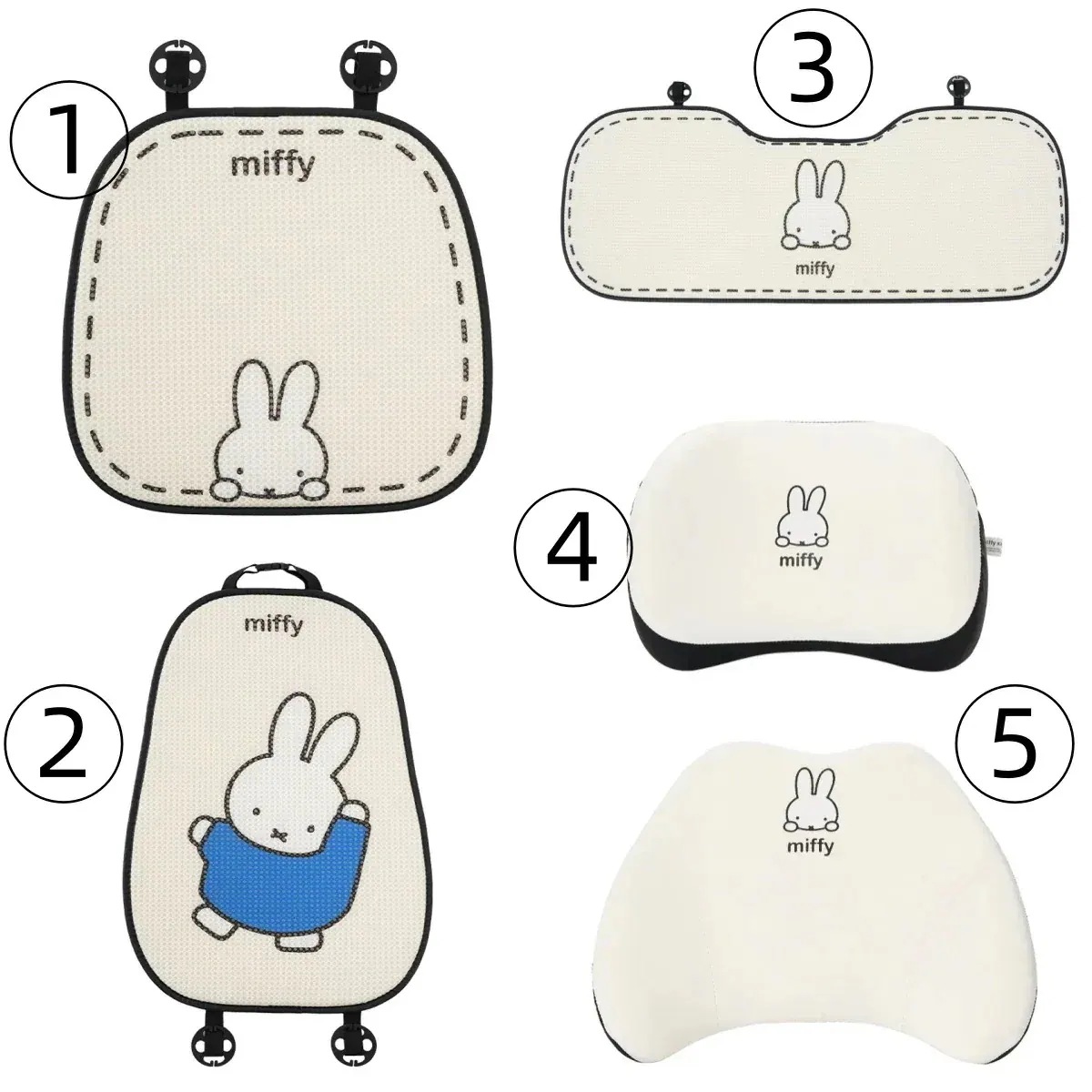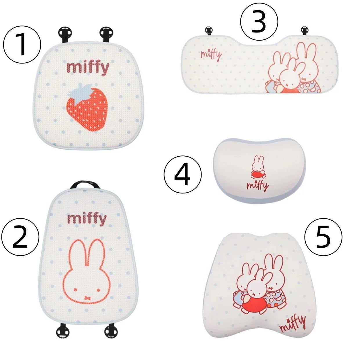 [12 Types]ミッフィーラビットクッションカークッションサマーアイスシルク通気性カークッションかわいい漫画の快適なカークッション車用座布団