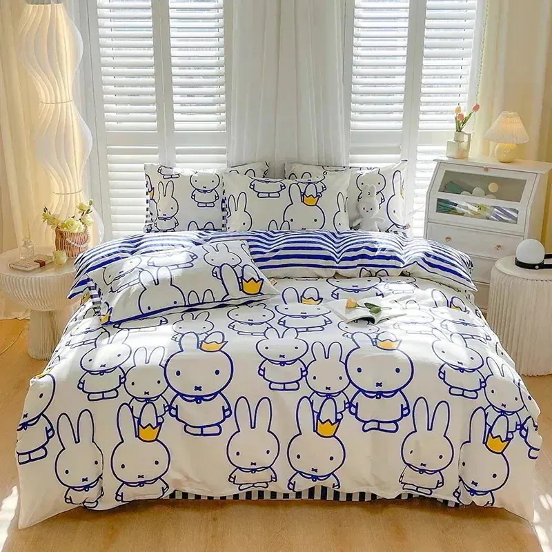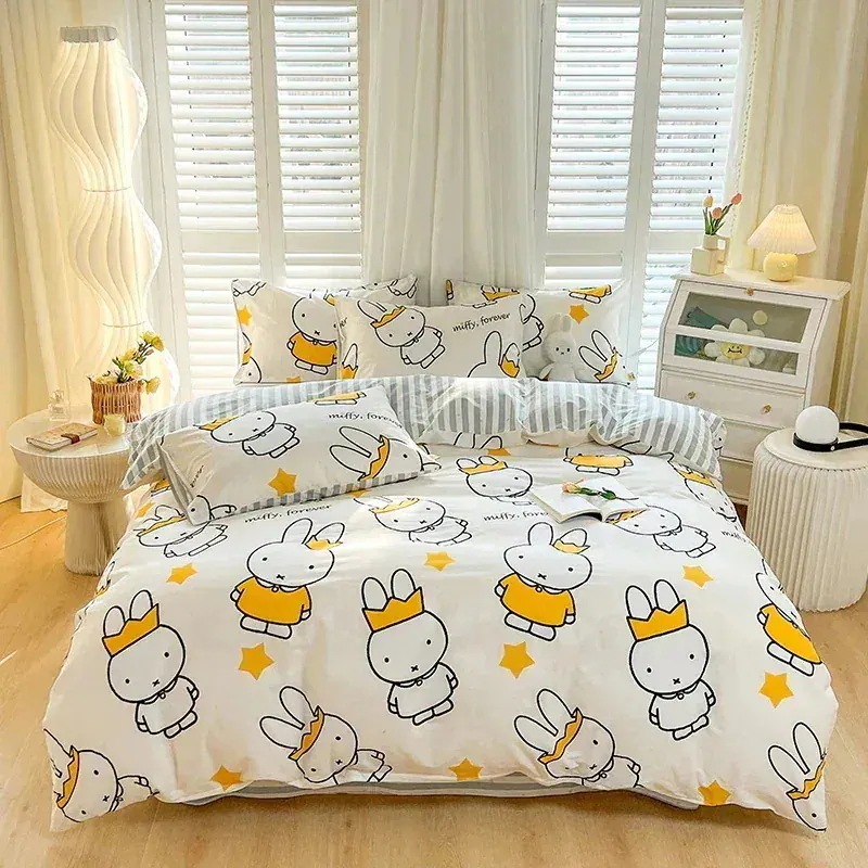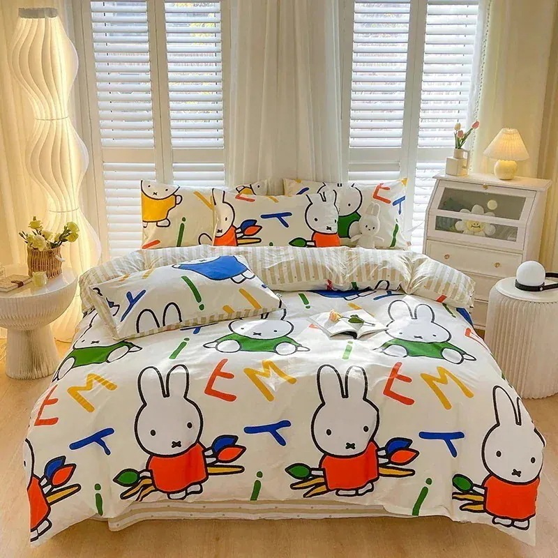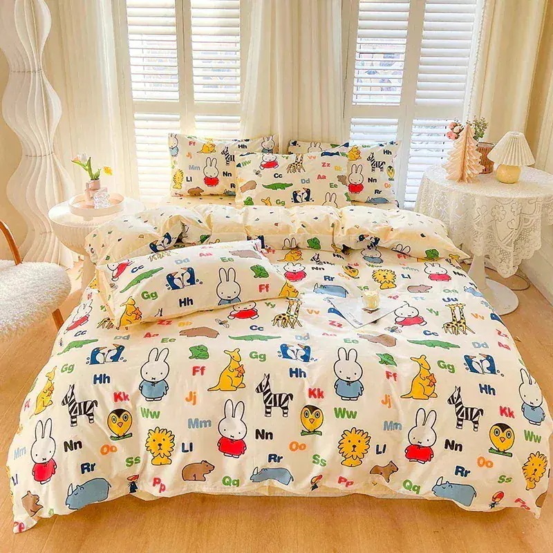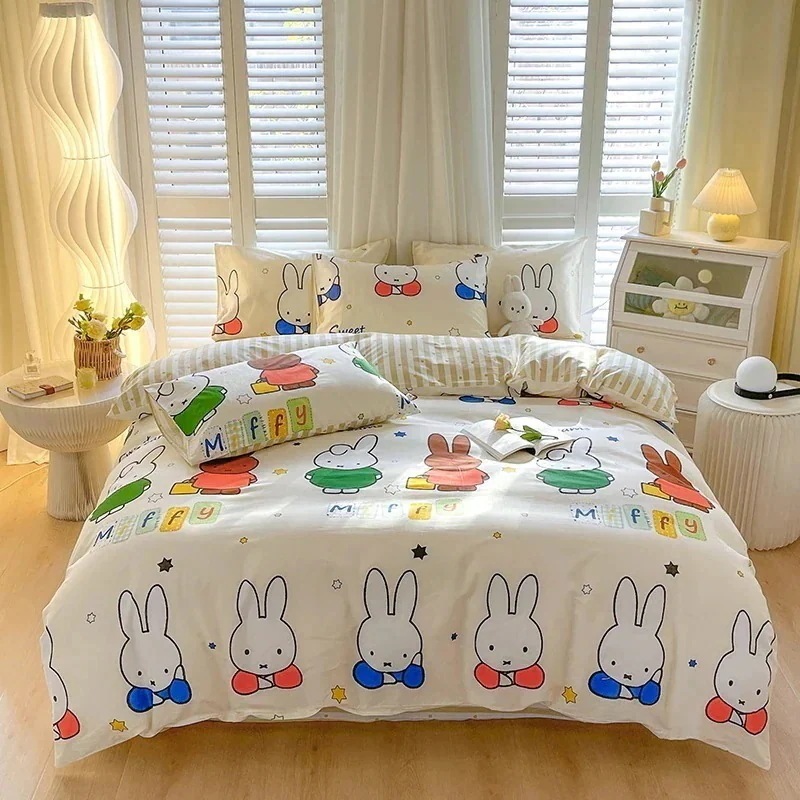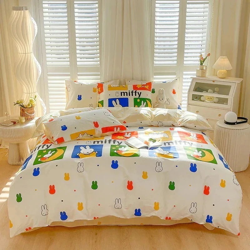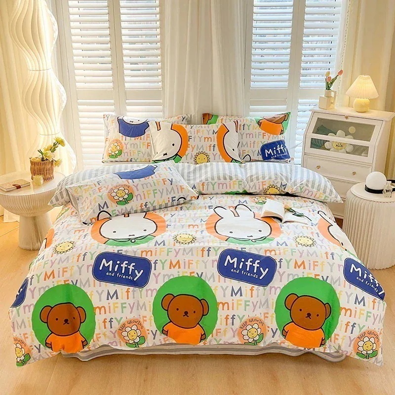 ミッフィー 布団カバーミッフィーうさぎコットン4点セット綿100寝具子供用掛け布団カバーシーツ寮ピース