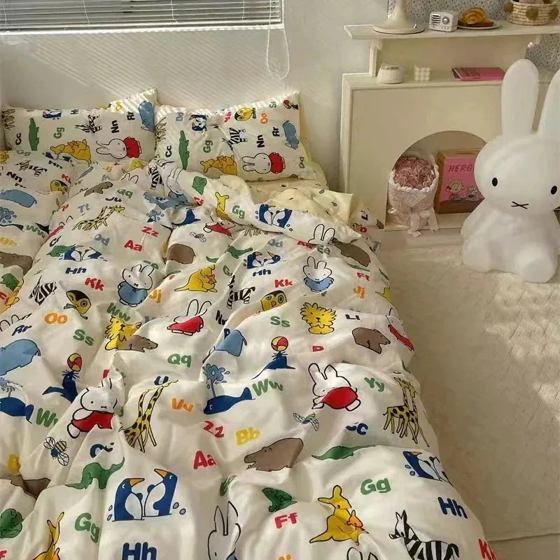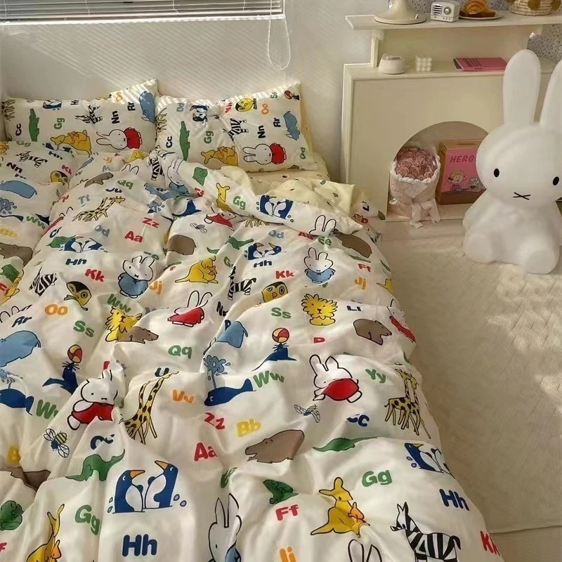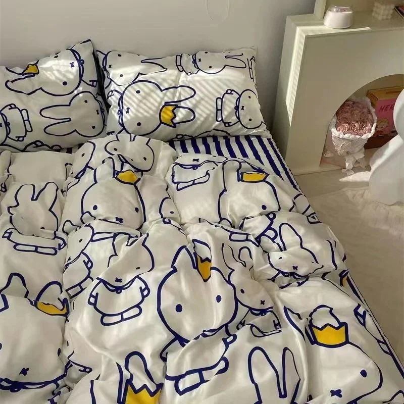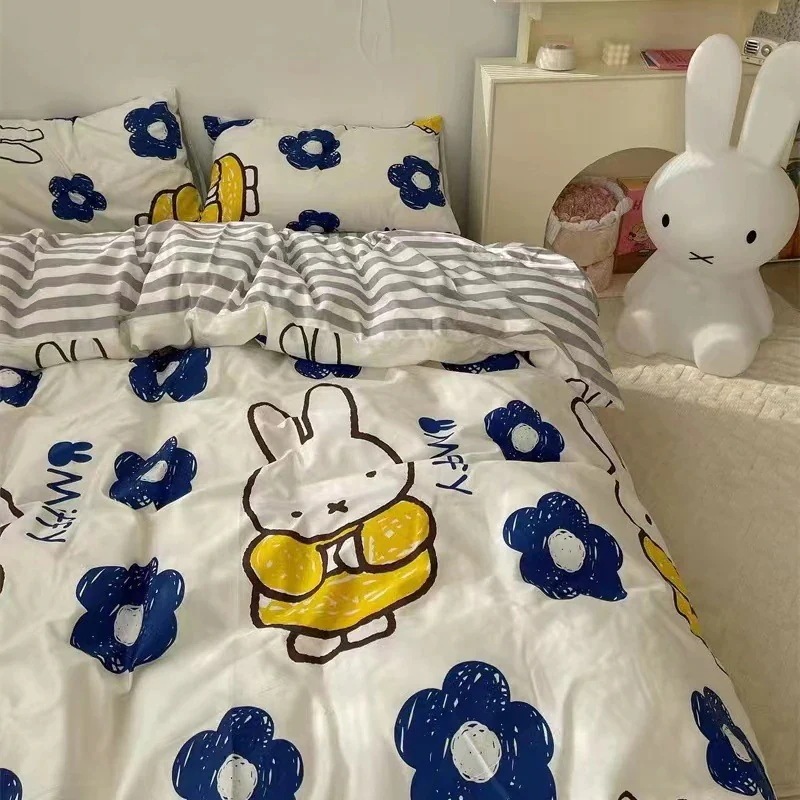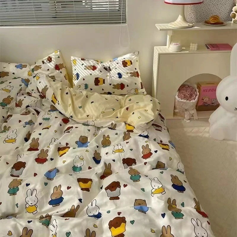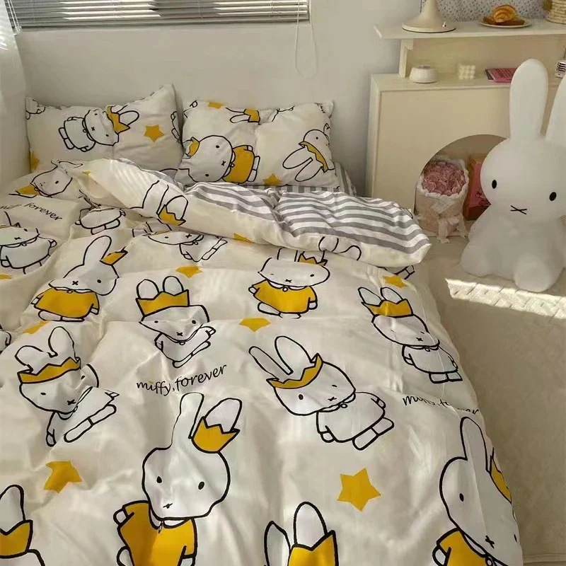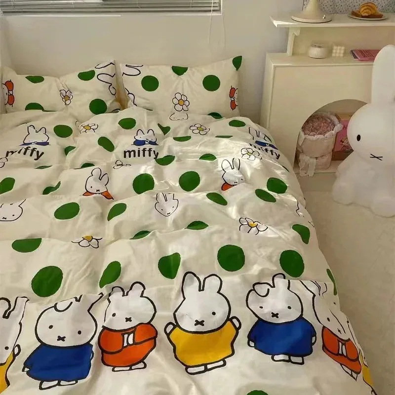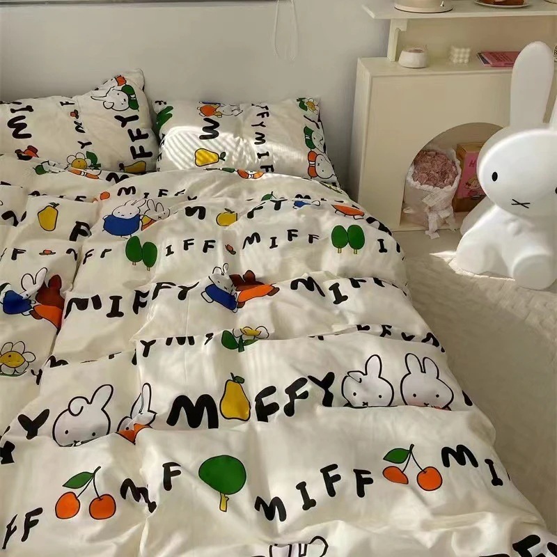 ミッフィー 100綿 純綿裸で寝 ベッドシーツ+布団カバー+枕カバー 純綿3点/4点セット 可愛い フリル付き 柔らか 肌触り おしゃれ 寝具 布団セット