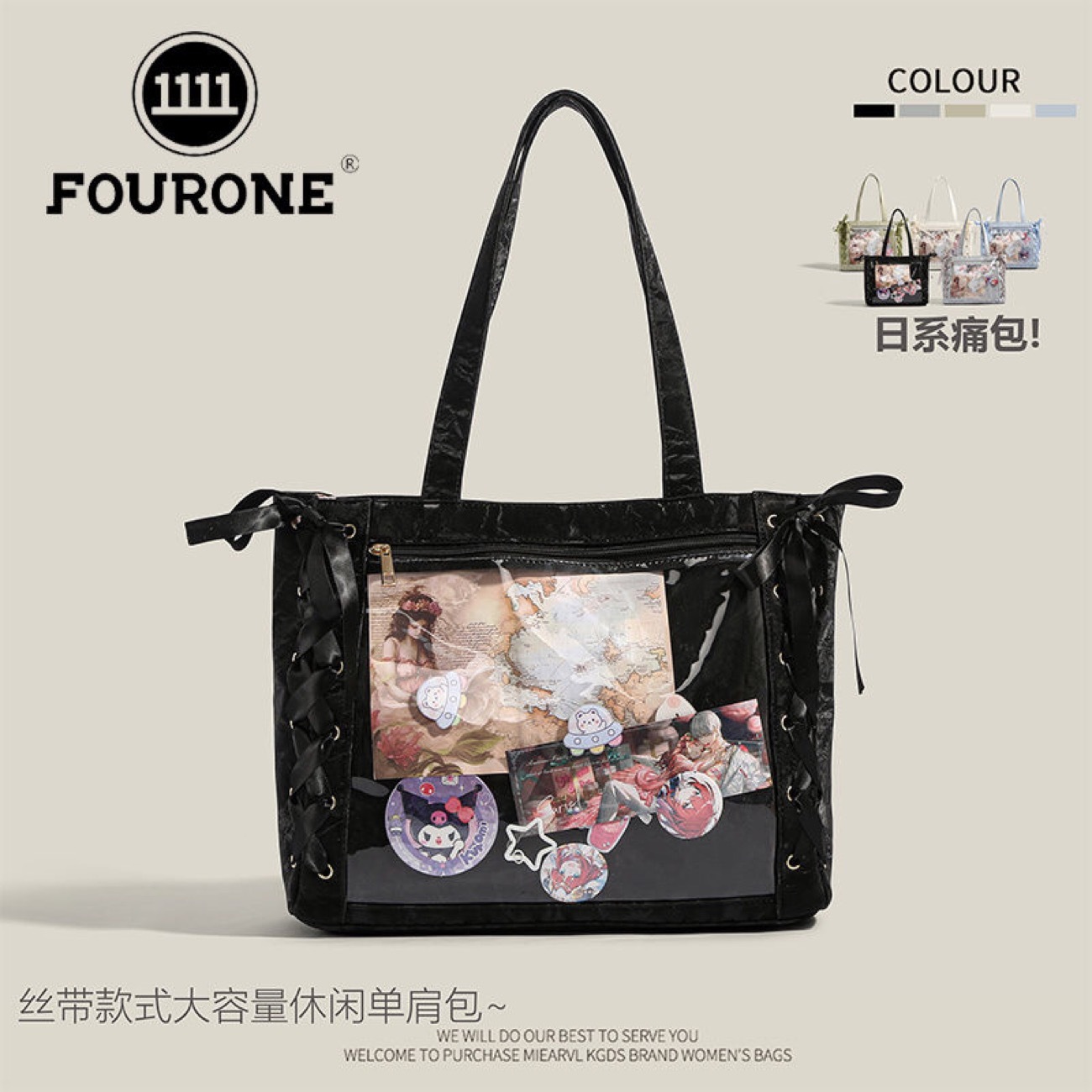 痛バック A4 痛バ レースアップ トート トートバッグ 痛バ 大きめ リボン レザー 見せバッグ 透明 大容量 革 推し活バッグ 推しバッグ 推しごとバッグ 編み上げ Lサイズ レディース