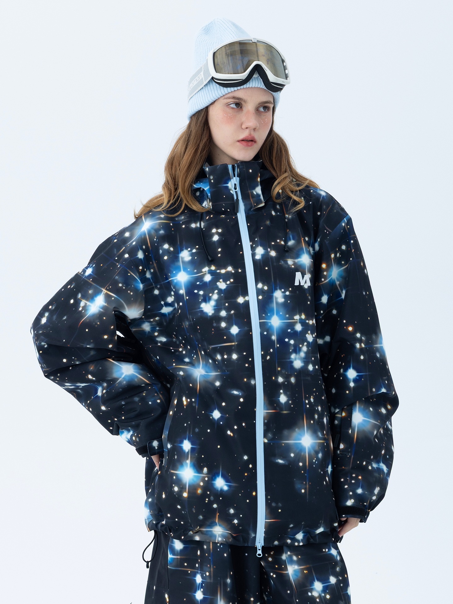 スノーボードウェア 2025 2026 上下セット メンズ レディース 耐水圧20000mm ジャケット パンツ 星柄 黒 3L 撥水加工 韓国風 スノボウェア スノーウェア スキーウェア