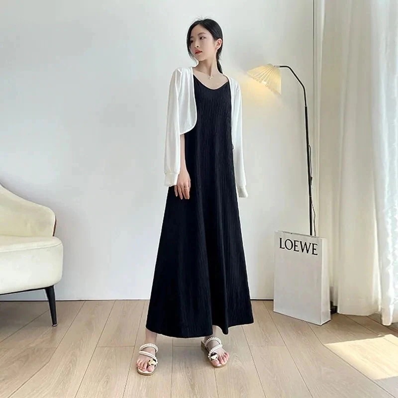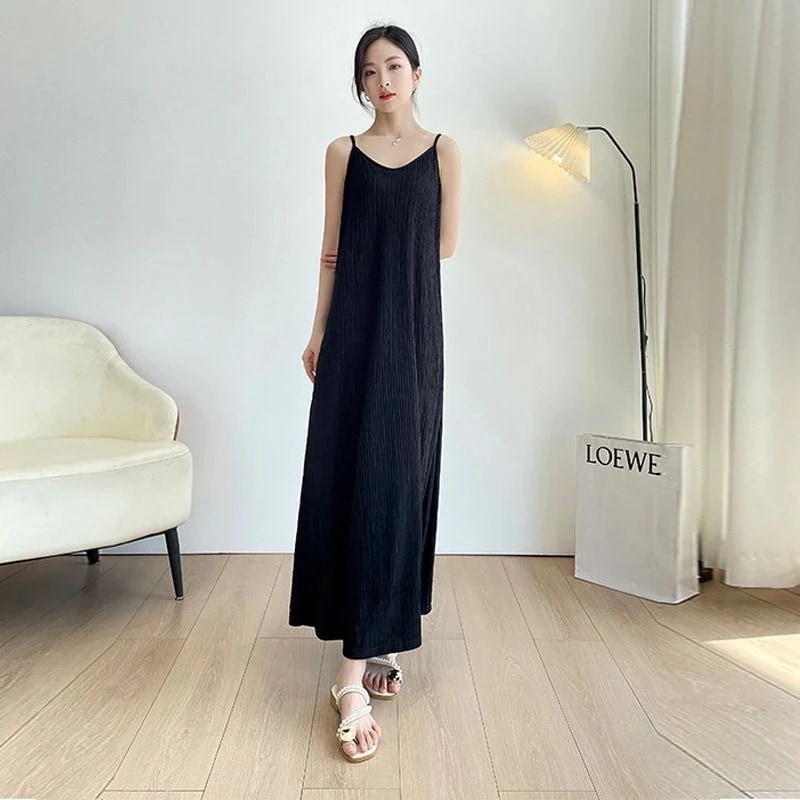 キャミワンピース シンプル ノースリーブ ワンピース 気質 レディース プリーツワンピース セルフカット可能 ゆったりカジュアル 着痩せ キャミソール ワンピース高級感冷淡風ロングス