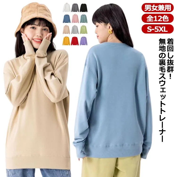 スウェット トレーナー レディース メンズ スエット プルオーバー クルーネック 無地 シンプル オーバーサイズ 綿 コットン ラル パーカー 長袖 トップス 学生 大人 カジュア