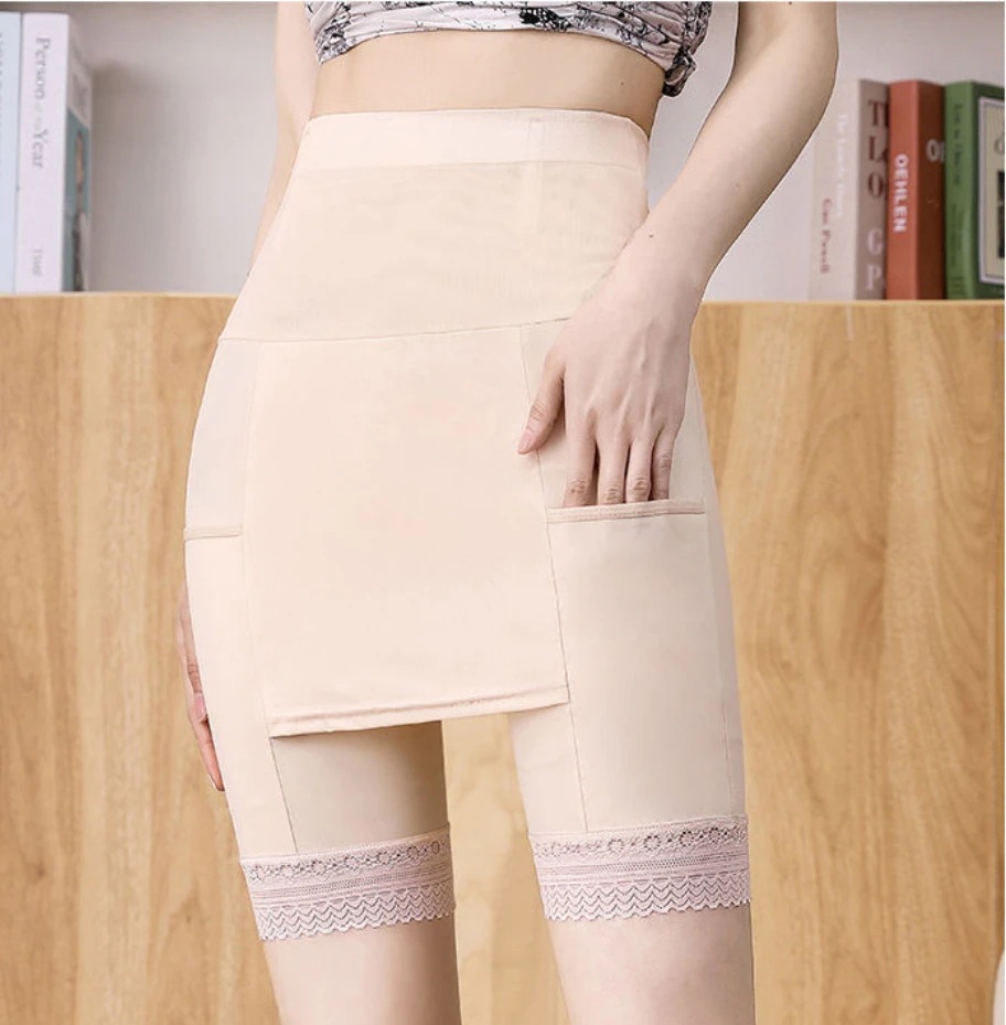 【新品】ガードル Yラインカバー 一体化 Yライン ペチコート インナー ハイウエスト 引き締め ヒップ ペチパンツ 涼しい 冷感 蒸れない 黒 ベージュ ポケット付き コットン