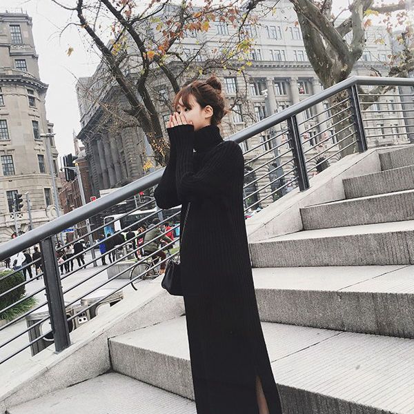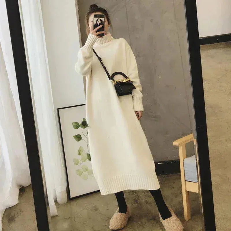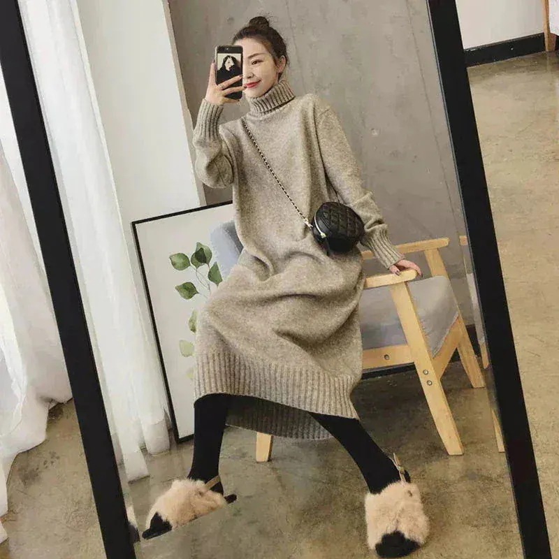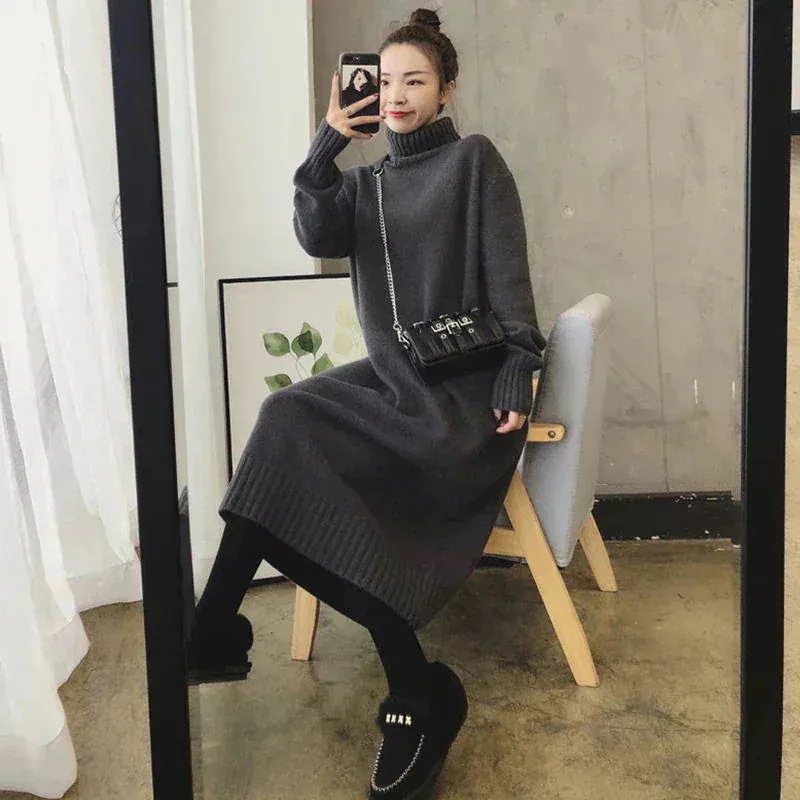【挑戦中】2025新作秋ニットワンピース/チュニック/長袖 /セミロングセーター/体型カバー着痩せ/高級感/レディース/ロングワンピース/膝丈ワンピース/冬アウタープチハイネック